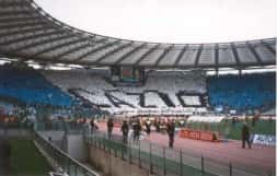 a Lazio annuncia l’acquisto del fuoriclasse inglese, già protagonista a “Italia ‘90”, Paul “Gazza” Gascoigne. “It’s ready for you”, stendardo gigante raffigurante una pinta di birra, dà il benvenuto all’asso inglese. L’anno dopo continua la “Gazza mania” con tantissime bandiere britanniche e maschere. A Capodanno 1991 a Roma, due nordafricani vengono accoltellati nel parco di Colle Oppio, con la tifoseria laziale subito tirata in ballo. Alcuni aggressori fanno parte dei “Viking”, dice la Questura, ma la curva non ci sta e attua un nuovo sciopero. Campionato mediocre nel 91/92, coi tifosi che accusano i giocatori di scarso impegno, così col Verona uno striscione annuncia “Noi come voi già in vacanza!”, con spazio a gommoni, ciambelle e canotti…Nel 1992 arriva Cragnotti e la Lazio torna ai vertici del calcio italiano e europeo. I Viking tolgono il proprio striscione per far spazio ad uno con la scritta “Non omologati”. Novità all’”Olimpico”: per la prima volta dopo tanti anni, anche la Sud torna a sostenere la Lazio, coi ragazzi del “Nucleo” che animano questo settore. La Nord volta pagina con un tifo prettamente anglosassone, ha un nuovo assetto. Il 18 aprile 1993, durante il derby di ritorno, si tocca l’apice della english-mania con una miriade (circa 6000) di stendardi goliardici e fantasiosi. La svolta è anche nelle pezze in balconata, al posto degli striscioni, che induce la Sud romanista a ideare lo striscione “Levate quei stracci che so’ asciutti”. In quel periodo sotto il tabellone c’è sempre la scritta “S.S.Lazio” e pezze come “06”, “Senza tregua”, Since 1900”, “Zoccolo duro”, I don’t mineral water”, “tuca tuca” e altre ancora, anche di quartiere. Nel 1993/94 in estate viene organizzato all’”Olimpico” un triangolare con Roma e Cagliari, ma i laziali contestano: “Lazio e Roma non possono disputare gare amichevoli, c’è troppa rivalità”. La serata viene boicottata dalla Nord, scoppiano incidenti con le forze dell’ordine. Il 6 marzo 1994 si gioca il primo derby in notturna di campionato. La Nord ammonisce: “No al calcio tecnologico”, precursori anche in questo gli Irriducibili “denunciano” il calcio in televisione. Una coreografia d’effetto colora la Nord con due braccia tese che sorreggono una sciarpa “popular” con la scritta “C’mon guys”, sul tartan centinaia di stendardi. Nel 94/95 in Nord torna il glorioso striscione “Ultras”. Il 15 gennaio ’95 la Nord partorisce la sua nuova rivista ufficiale, titolo “La voce della Nord”. Domenica 11 giugno 1995 Cragnotti annuncia: “Ho ceduto Signori al Parma per 25 miliardi di lire”. Ne seguirà un’autentica sommossa popolare al grido “Signori non si vende”, sotto la sede di Via Novaro. Grande tensione, è la protesta del calcio moderno, del cuore contro i miliardi. I tifosi non ci stanno e vincono facendo interrompere ogni trattativa. Alle 19,30 la notizia ufficiale: “Signori resta alla Lazio ma io vado via!”, annuncia il patròn, che in realtà rimarrà ancora per qualche anno. Nella stagione 96/97 Signori realizza il centesimo gol in maglia biancoceleste e la Nord lo ricambia con una coreografia che ritrae cento immagini del bomber e la scritta “100 volte grazie!”. Verrà incoronato e dipinto su uno stendardo dove pare vero, disegnato magistralmente dall’artista “Disegnello”, l’autore di tutte le scenografie in curva Nord, al secolo Massimo Di Clemente, su cui è scritto “La Nord incorona il suo re”. “Disegnello”, tautore professionista, si laureò con 110 e lode all’Accademia delle Belle Arti. L’anno dopo la Nord sciopererà per le botte di Napoli prese dalle forze dell’ordine (vedi sezione “Curiosità”) fino alle finali di Coppa Italia e Coppa Uefa, la prima vinta, la seconda persa. Nel 98/99 la Lazio vince la Supercoppa italiana, con 6mila fedeli che invadono il “Delle Alpi” (2-1 alla Juve). Nel ’98 gli Irriducibili abbandonano lo stile-british per tornare allo striscione tradizionale, che per la verità era apparso nel periodo filo-anglosassone alcune volte, soprattutto nei derby. Si torna all’antico, per recuperare vecchi valori e per la voglia dei più giovani, sentitisi smarriti, di identificarsi dietro uno striscione, senza abbandonare il carattere spontaneo, ma anche senza più sezioni o dissapori. La Lazio nel ‘99 perde lo scudetto per un punto, fatale il pareggio di Firenze, ma si rifarà tre giorni dopo a Birmingham, vincendo la Coppa delle Coppe contro il Real Maiorca, seguita migliaia di tifosi. Nel 1999/2000 la Lazio più forte della storia si aggiudica il secondo scudetto, che però non avrebbe vinto senza l’aiuto dei suoi tifosi, che l’hanno sorretta non solo sugli spalti, ma anche scendendo in piazza, per manifestare la propria rabbia contro i continui torti arbitrali, di nuovo a Via Allegri davanti la Figc, che uno dopo l’altro hanno fatto sbottare il popolo laziale, con la classica “goccia che fa traboccare il vaso” rappresentata dal gol regolare di Fabio Cannavaro del Parma, annullato senza apparente motivo dall’arbitro De Santis in Juve-Parma 1-0. Viene inscenato un funerale per le vie di Roma fino ad arrivare allo stadio, facendo entrare una bara in curva Nord, con la scritta “Il calcio italiano è morto!”. A Via Allegri corteo con in testa lo striscione “spareggio o guerra!”. Nel corso degli anni 2000 la Nord continua ad essere guidata dagli Irriducibili. Insieme a loro i vecchi CML. ’74, i “Viking”, che però nel 2005 si scioglieranno, gli “Ultras”, gli “Anni ‘70”, il “Manipolo”, i “Lazio Fans” e la “Banda Noantri”, che nasce nel 2000 per sciogliersi nel 2005, schiacciata dalla repressione (numerose diffide, arresti, problemi interni), con molti ragazzi della “Banda” che nel 2007 andranno a formare “In Basso a Destra”. In Tribuna Tevere, oltre ai “Veterani”, c’è anch