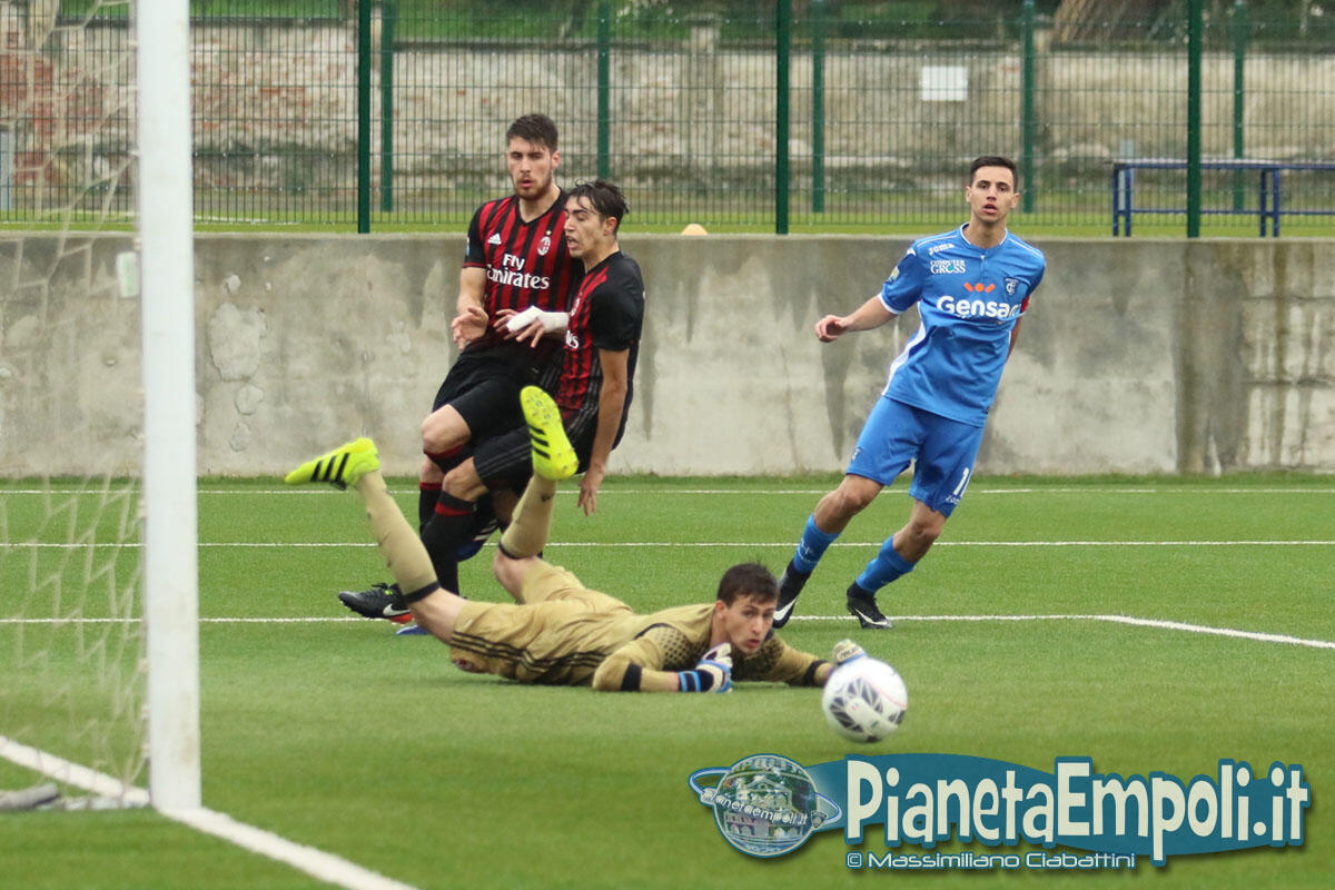 18′: Zucchetti duella sulla sinistra con Zappella che lo mette a terra, punizione Milan battuta da Hadziosmanovic, libera la difesa
