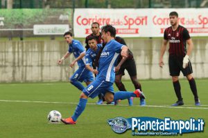 lancio a tagliare da destra a sinistra per Damiani in area milanista dove viene affrontato da Bellodi che lo mette a terra. E’ rigore. Sulla palla va lo stesso Damiani che con rasoterra angolato e preciso spiazza Guarnone e porta in vantaggio l’Empoli