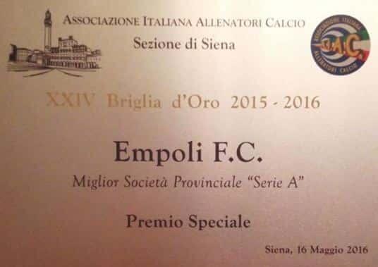 Alberto Pelagotti si è aggiudicato nella categoria calciatori la “Briglia d’Oro 2016” manifestazione organizzata dall’AIAC di Siena.