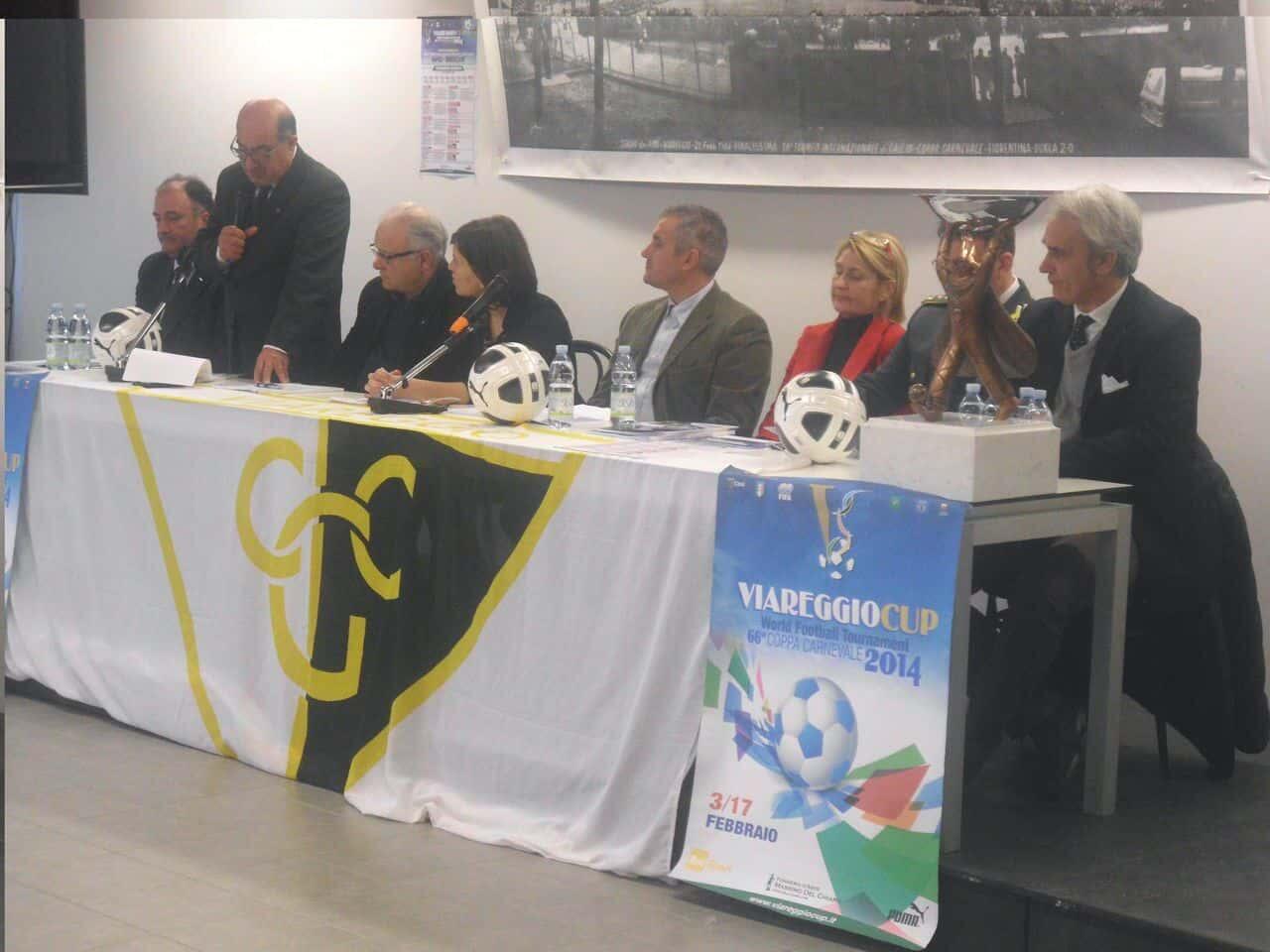 presentazione ufficiale della 66a edizione della Viareggio Cup (3-17 febbraio). Il presidente del Centro Giovanni Calciatori di Viareggio che organizza il Torneo, Alessandro Palagi, ha illustrato il calendario, i quattro premi speciali, il nome del giocatore che leggerà il giuramento prima della gara inaugurale informando anche del ricco palinsesto che anche quest’anno riserverà al torno la RAI che trasmetterà le gare che si disputeranno nei campi di Viareggio e San Giiliano Terme oltre a vari servizi sul Torno nel corso dei TG sport.