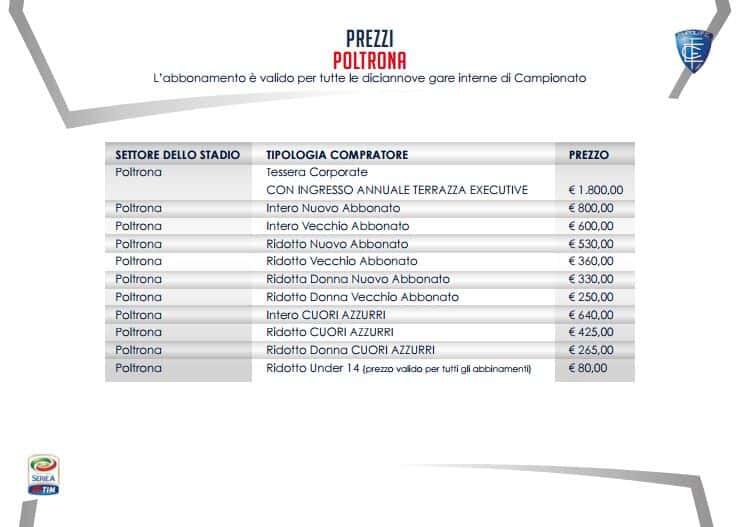 Se è davvero questa, è peggiore di quella della scorsa stagione. Meno male che si salvano i prezzi “da Empoli” come al solito (grazie società!).