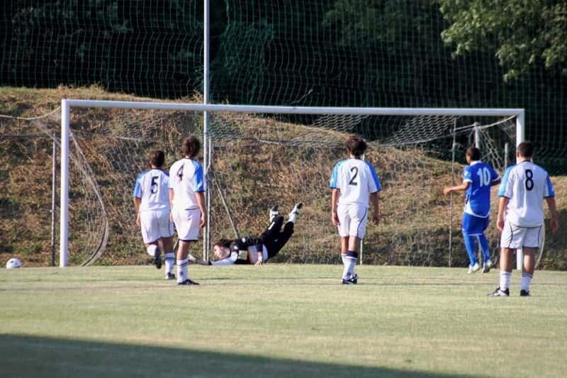 18′ – Dopo un’azione prolungata degli azzurri Tavano colpisce di testa sicuro di segnare il gol del 3-0 ma sulla linea l’estremo difensore Fantozzi compie il miracolo e allontana il pallone.