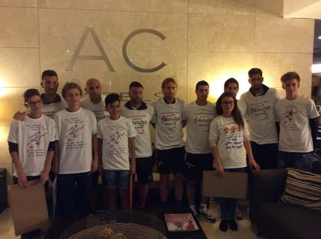 Bella sorpresa per la squadra azzurra, ieri, all’arrivo a Genova. Infatti davanti all’Hotel dove i ragazzi hanno poi pernottato, ad attenderli un gruppo di ragazzi di una delle associazioni che in questi giorni molto si sta dando da fare per ripulire la città di Genova dopo la tremenda alluvione di qualche giorno fa.
