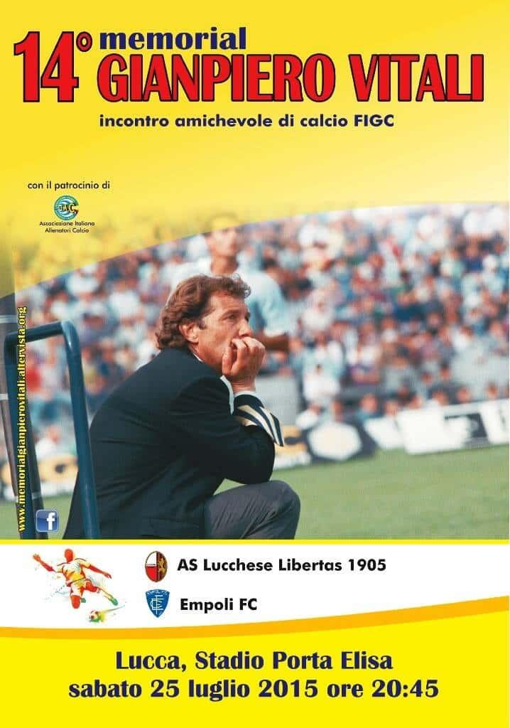 Proprio come lo scorso anno, in occasione della partita amichevole tra Lucchese ed Empoli (che si giocherà allo stadio Porta Elisa di Lucca sabato 25 luglio 2015 alle ore 20:45) si celebrerà il “14° Memorial GIANPIERO VITALI”, in ricordo dell’ex allenatore azzurro che sulla panchina dell’Empoli conquistò la promozione in Serie B nel campionato 1982/83.