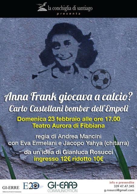Come recita la nota dell’Ufficio Stampa del Comune è “Un monologo in due parti che s’intreccia di storie vere, leggende e narrazioni tra Anna Frank e Carlo Castellani, il grande giocatore dell’Empoli morto a Mathahusen l’11 agosto del 1944, qualche giorno prima della partenza di Anna Frank per Auschwitz (3 settembre del 1944).
