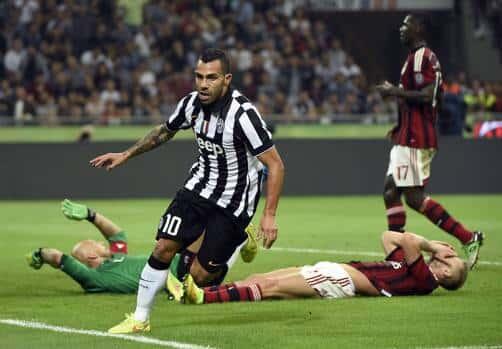 Vince la Juventus il secondo anticipo di giornata della Serie: 1-0 sul campo del Milan, gol-vittoria di Tevez al 26 del primo tempo. I bianconeri restano a punteggio pieno e si isolano al comando della classifica, in attesa di conoscere l’esito della sfida della Roma. Il Milan resta invece a quota 6 e martedi è di scena ad Empoli.