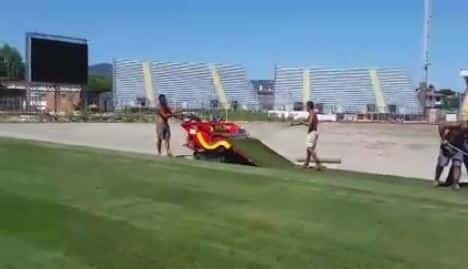 I tecnici e gli operai addetti alla manutenzione del campo hanno infatti quest’oggi “sbobinato” il tappetto d’erba che adesso andrà ad attaccarsi al fondo sabbioso e che tra quindici giorni vedrà giocarci sopra la prima partita.
