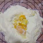 Iniziate dalla pasta. Disponete la farina a fontana sulla spianatoia, versate al centro le uova e l’acqua (foto 1), sbattetele con la forchetta, e poi impastate fino a ottenere un composto liscio e omogeneo. Se avere un impastatrice mettete tutti gli ingredienti e fate impastare con il gancio. Formate una palla e  lasciate riposare almeno un’ora.