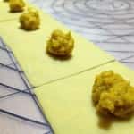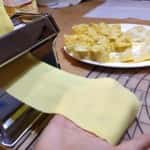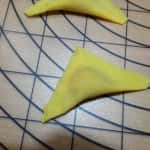 Tirate la sfoglia fine, deve risultare trasparente (foto 5 – 6). Ritagliate dei quadrati che abbiano il lato di 4-5 cm utilizzando una rotellina tagliapasta e disponete al centro di ciascuno un cucchiaino di ripieno (foto 7), chiudete la pasta a triangolo per realizzare i cappellacci (foto 8), premendo lungo gli orli per saldarla, quindi ripiegatela a tortello e fate in modo che i bordi aderiscano bene per tenere chiusi i cappellacci (foto 9). Fateli riposare su una superficie infarinata fino al momento della cottura in modo che non si attacchino.