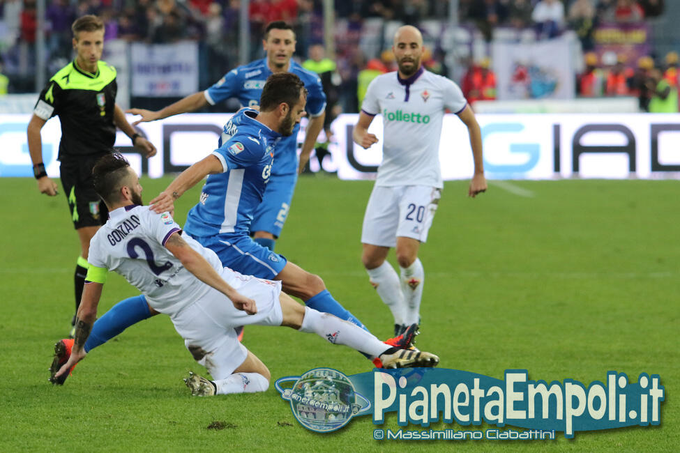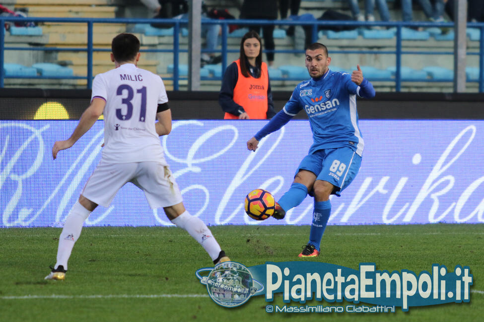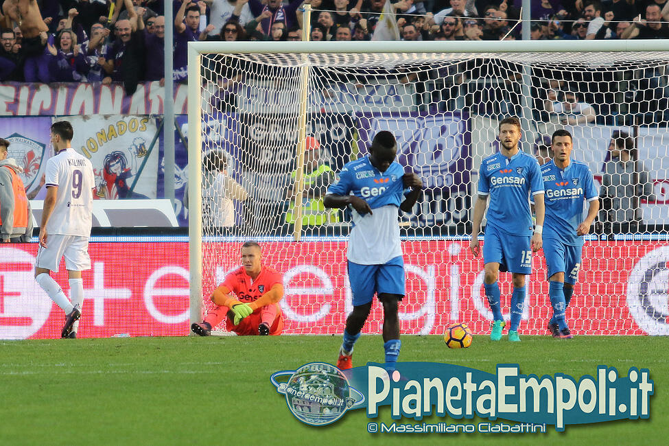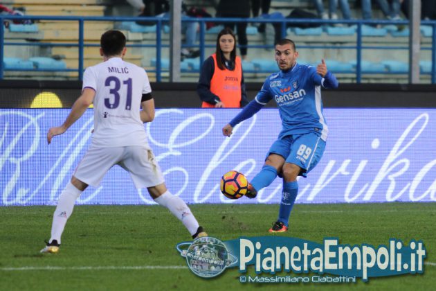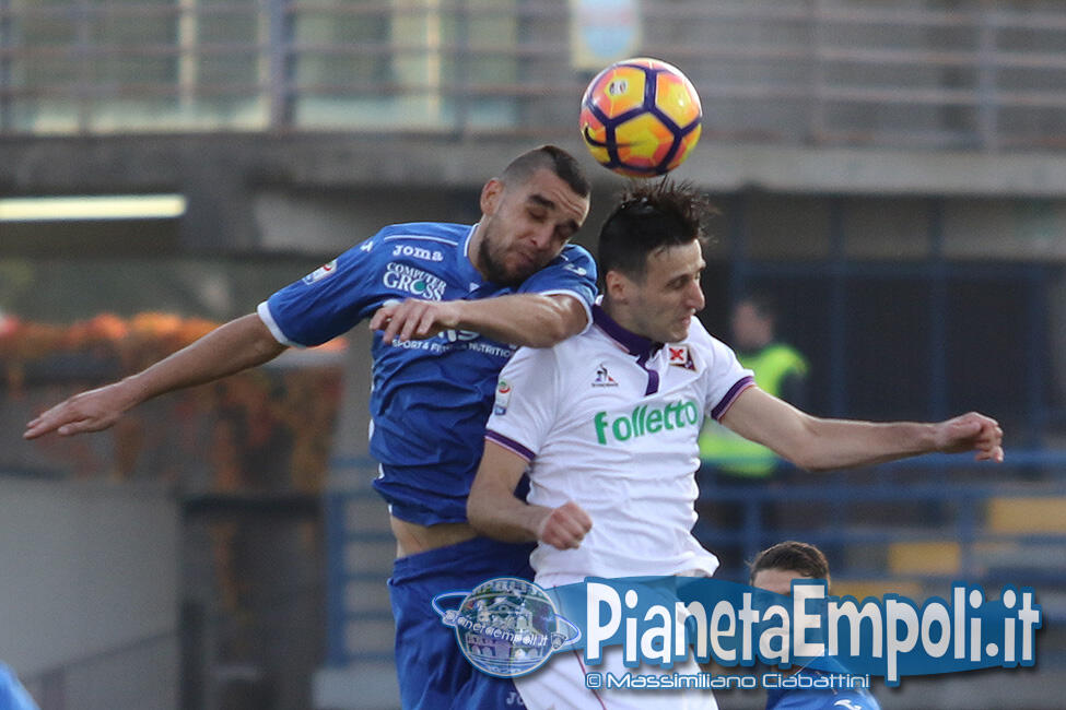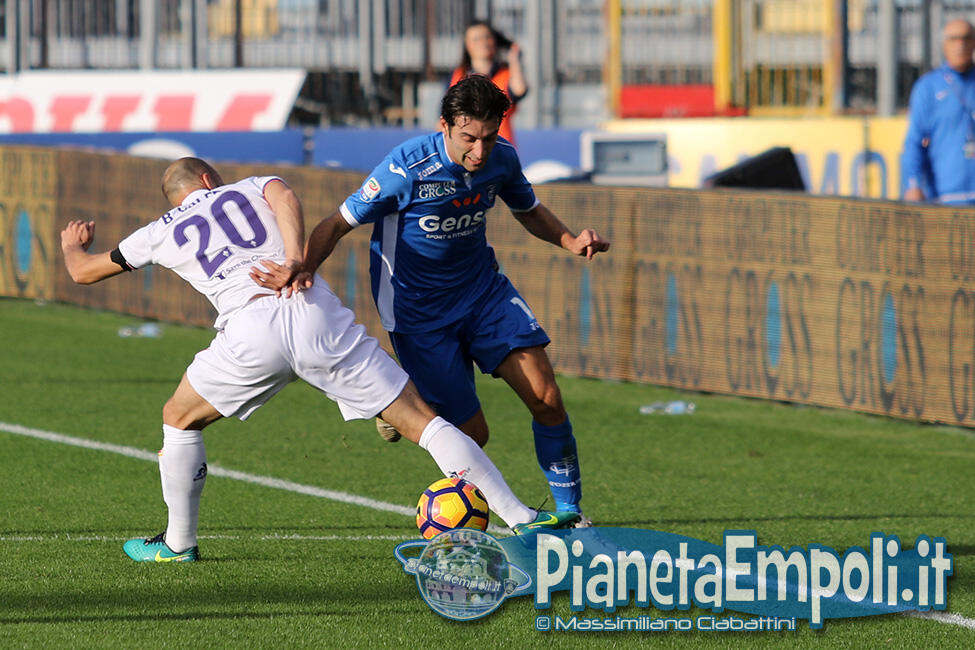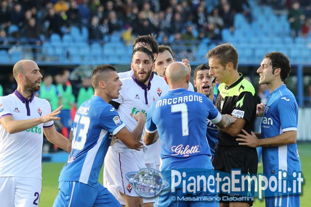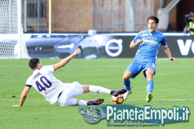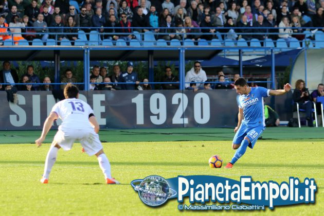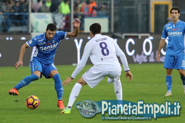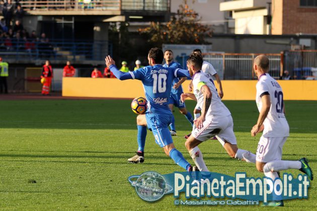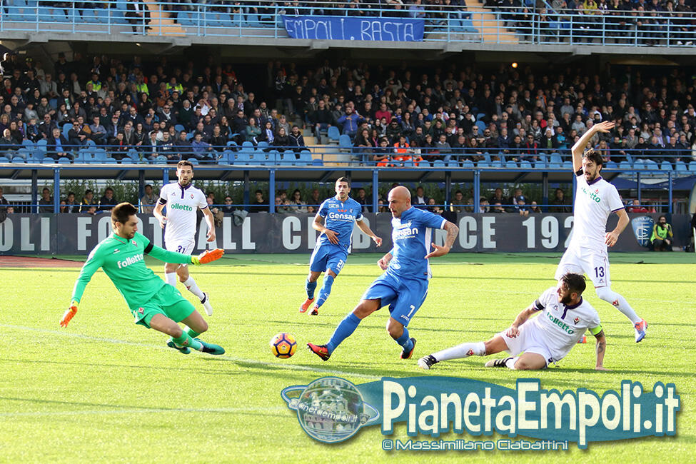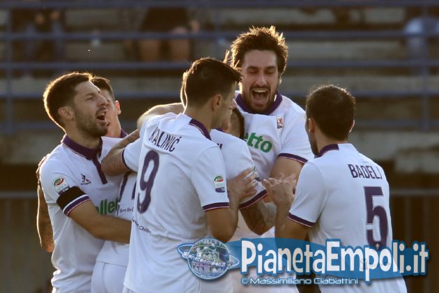 L’Empoli non riesce a dare continuità al proprio percorso, passando da vincere 0:4 a Pescara a perdere con il medesimo risultato l’attesissimo derby con la Fiorentina. Non basta il supporto incessante e generoso del pubblico del Castellani alla formazione di Martusciello che, pur subendo il vantaggio viola con Bernardeschi al 27′, si mantiene viva fino a sfiorare il pareggio in chiusura di frazione con Maccarone. La ripresa si apre però con l’ingenuità di Diousse che atterra Badelj in area dopo appena 1′: Ilicic dal dischetto non sbaglia, raddoppio viola ed Empoli che subisce pesantemente il contraccolpo psicologico del goal subito a freddo. Al cospetto di una Fiorentina tutt’altro che irresistibile i ragazzi di mister Martusciello, nonostante il tecnico provi a rimescolare le carte con le sostituzioni, non riescono ad organizzare una manovra fluida ed in grado di creare concrete occasioni da rete. L’Empoli si spegne progressivamente, ne approfitta la Fiorentina che segna altre due reti e poi si limita a controllare il gioco fino al fischio finale. Quella odierna entra negli annali azzurri come la peggior sconfitta interna della storia nei derby con i viola, una pagina che nessuno avrebbe voluto veder scrivere e che siamo certi darà alla squadra quella spinta emotiva a rialzare la testa di cui pare avere assoluto bisogno. A seguire il tabellino e la gallery del match odierno.