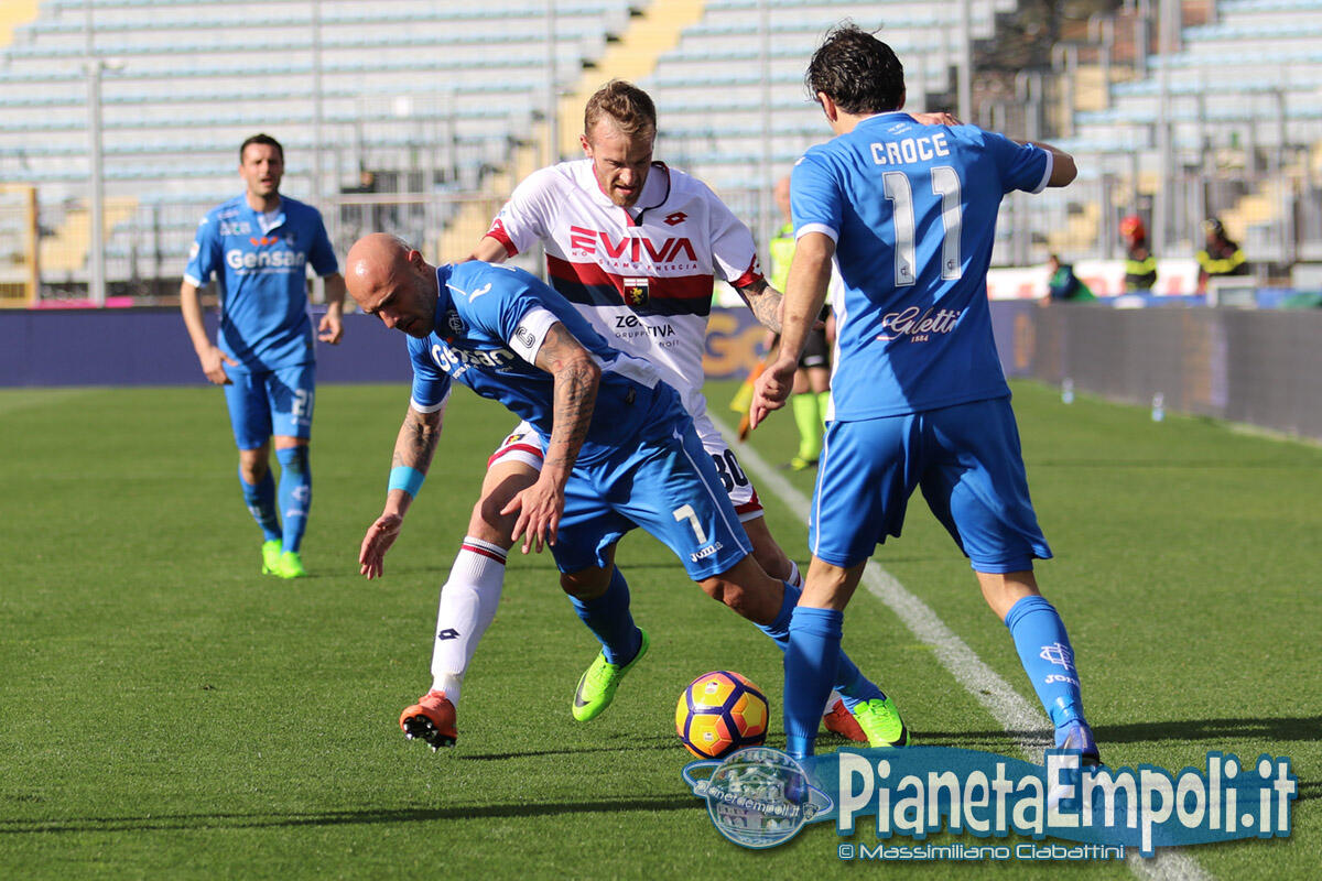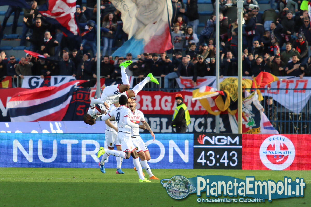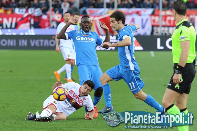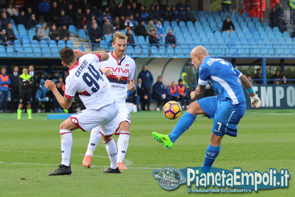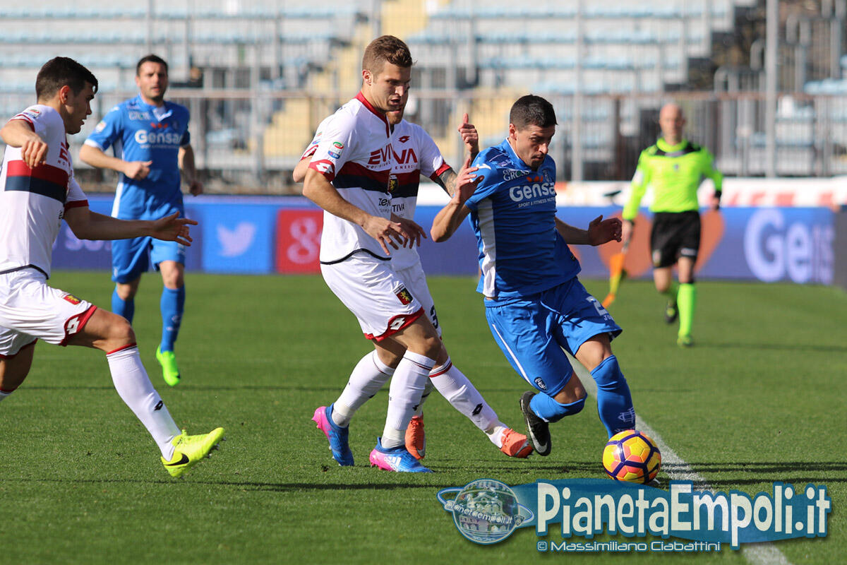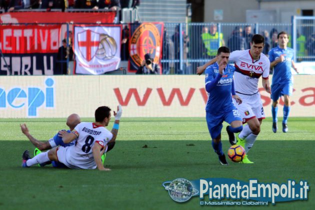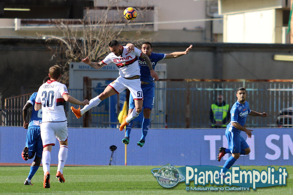 Pessima prestazione dell’Empoli, oggi obbligato a far punti, che esce sconfitto per 0-2 da un modestissimo Genoa. L’Empoli fa gioco, palleggia bene ma è inconcludente in fase offensiva dove non crea praticamente mai pericoli concreti alla porta di Lamanna, e così le gioie per i tifosi azzurri anche oggi devono arrivare dalle cronache degli altri campi. Il primo tiro in porta della gara è di Maccarone, che al 3’ alza nettamente sopra la traversa, poi possesso palla empolese ma occasionissima per gli ospiti che portano al 13’ Pinilla a calciare solo davanti a Skorupski. L’Empoli insiste in uno sterile possesso palla, evidenziando tutti i propri attuali limiti sotto porta, mentre il Genoa dietro la linea della palla gioca la propria partita sulle ripartenze. La ripresa ripropone il medesimo canovaccio della prima frazione e l’unico sussulto ai tifosi del Castellani lo regala la notizia del vantaggio del Torino sul Palermo intorno al 30′. All’ultimo minuto, quando ormai tutto sembra pronto per chiudere l’incontro in parità, Ntcham trova un tiro improbabile dal limite che pesca l’angolino in cui Skorupski non può arrivare. Due minuti più tardi, dopo il danno arriva la beffa: Hiljemark raddoppia per i rossoblu condannando gli azzurri alla sconfitta e dalla Maratona piovono, per la prima volta, fischi.