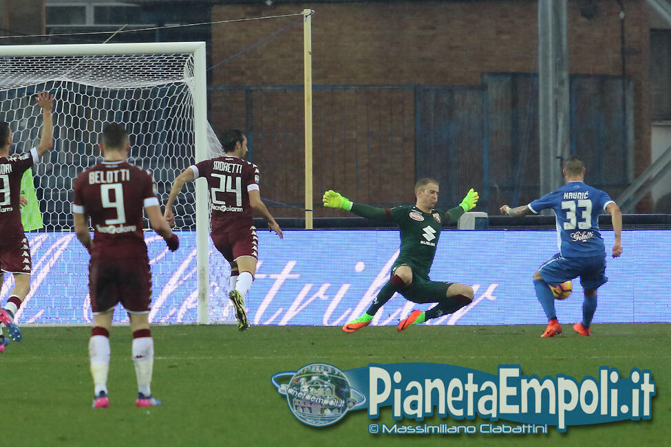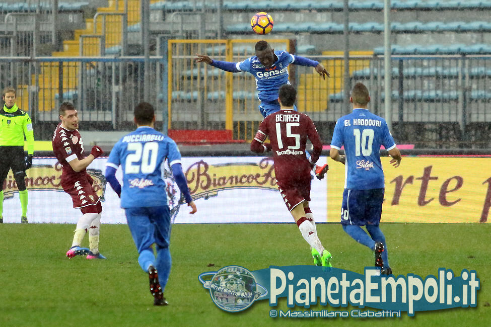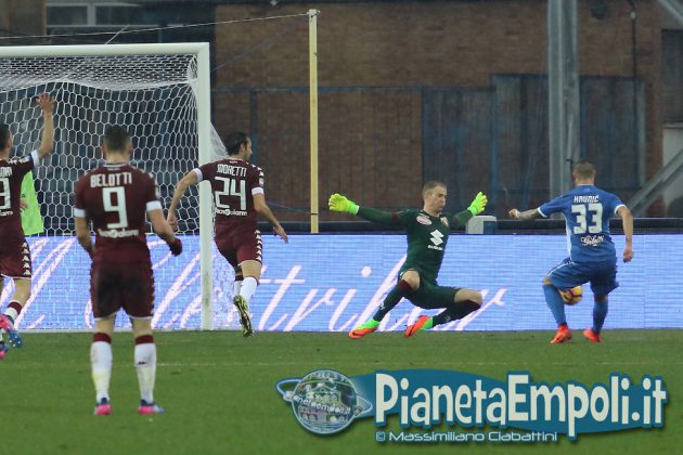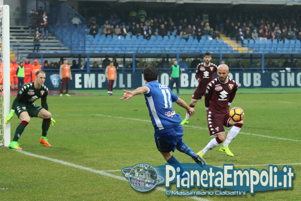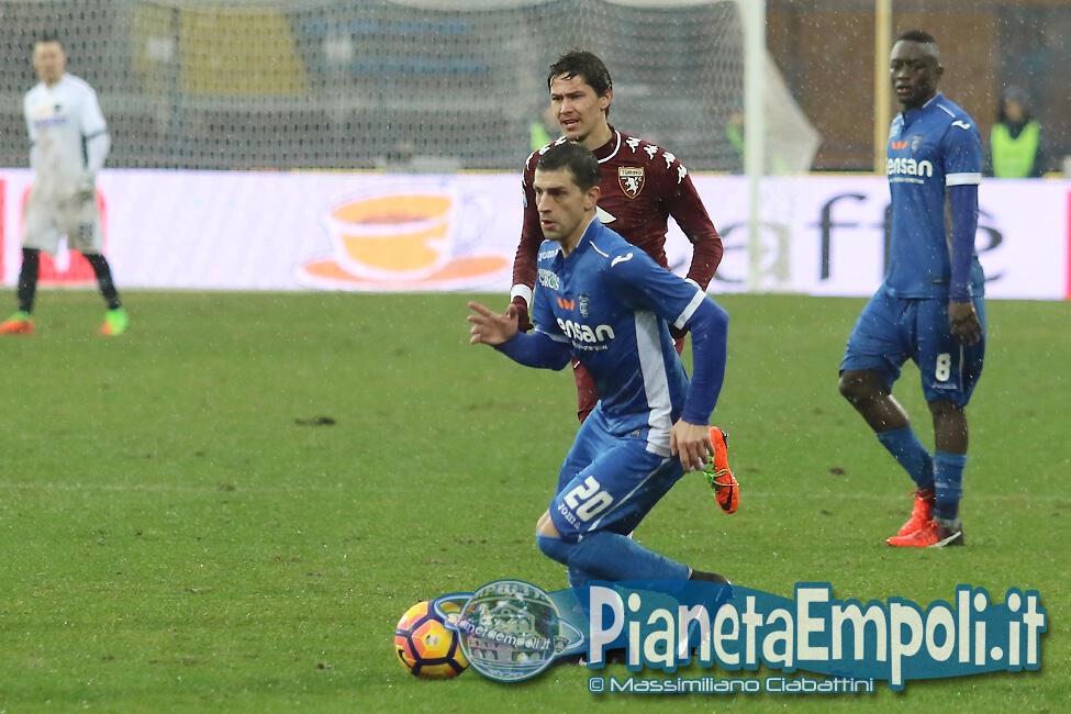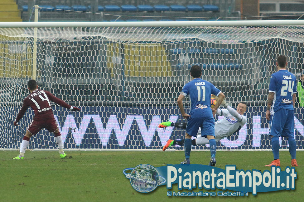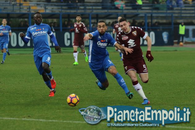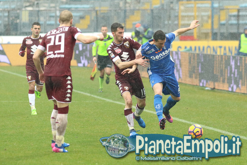 Con carattere e determinazione l’Empoli si rimette in carreggiata dopo la sconfitta di Crotone, riacciuffando una gara cominciata nel peggiore dei modi con la rete degli ospiti dopo appena 10′: sul filo del fuorigioco Belotti raccoglie al volo un cross dalla sinistra e insacca imparabilmente sotto la traversa della porta di Skorupski. Gli azzurri non perdono però la testa e cercano con caparbietà il goal del pareggio, sfiorandolo prima con un’eccezionale rovesciata in area di Mchedlidze che lambisce il palo alla destra di Hart, e trovandolo poi con Pucciarelli rapace nell’avventarsi su un retropassaggio della difesa granata rallentato dal campo impregnato di acqua per la copiosa pioggia di oggi. La ripresa si apre con il Torino lanciato in avanti alla ricerca del goal vittoria, che potrebbe trovare su rigore con Iago Falque se il solito immenso Skorupski non si opponesse alla sua conclusione dal dischetto. Le condizioni del terreno del Castellani peggiorano col passare dei minuti e ciò non contribuisce certo al gioco espresso dalle due compagini, che entrambe peccano di precisione al momento di arrivare alla conclusione in area. Il match scivola via così verso un pareggio che in fin dei conti rispecchia l’equilibrio visto in campo, dove di fatto nessuna delle due squadre ha mostrato una netta superiorità sull’altra. A seguire gallery e tabellino del match.