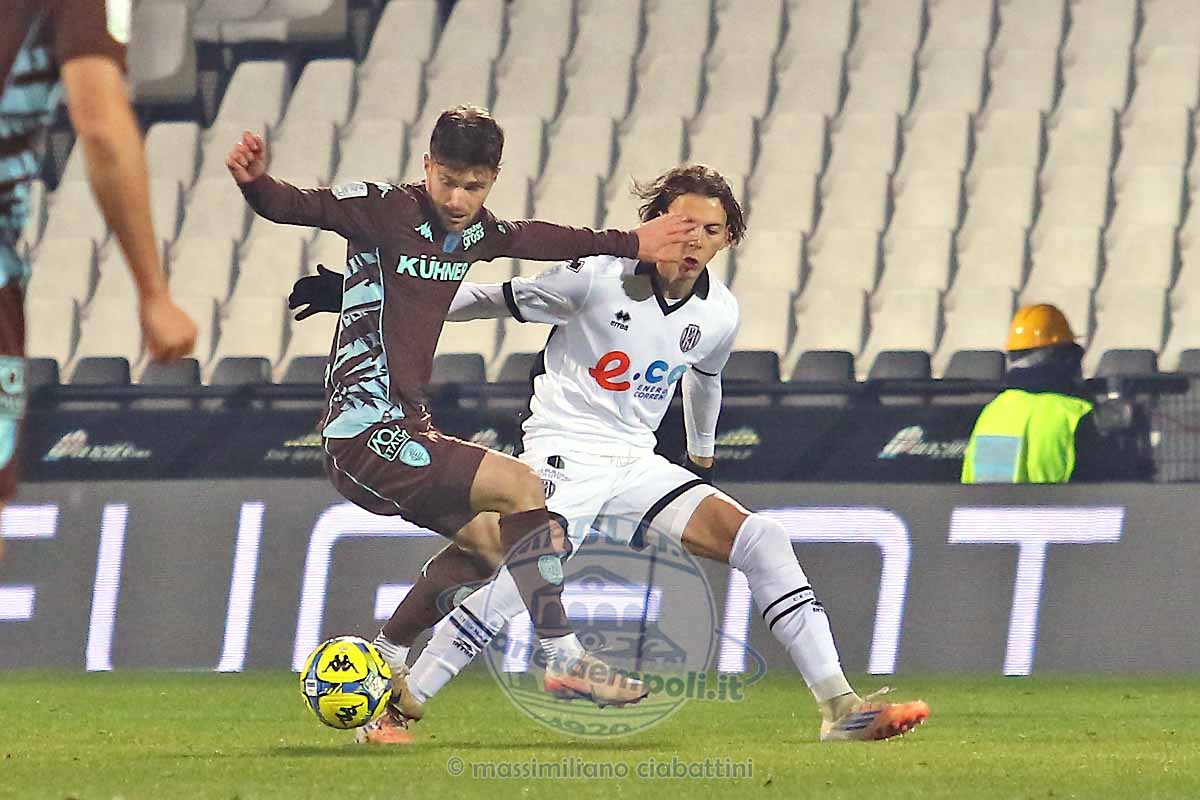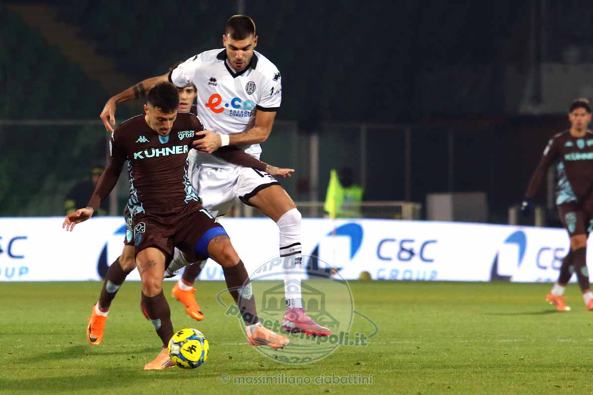 58′- Azione tambureggiante dei bianconeri, cross di Ciervo intercettato da Fulignati poi Chistian Shpendi viene murato da Moruzzi. Poi viene fischiato un fallo in attacco di Mangraviti.