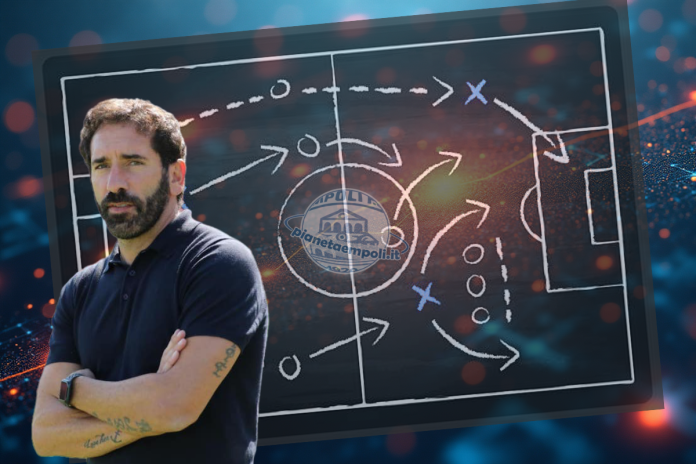 Storicamente Caserta non è un allenatore “dogmatico” dal punto di vista del modulo. La sua carriera in panchina racconta di un tecnico piuttosto pragmatico, capace di adattare il sistema di gioco alle caratteristiche della rosa a disposizione e al momento della stagione. Tuttavia, all’interno di questa elasticità, esistono alcune linee guida tattiche piuttosto riconoscibili. Il marchio di fabbrica delle squadre di Caserta è quasi sempre una struttura con difesa a quattro. Il sistema più utilizzato nel corso degli anni è stato il 4-3-3, modulo che garantisce ampiezza offensiva e permette di sviluppare un calcio abbastanza verticale. Nel 4-3-3 casertiano il centrocampo assume un ruolo chiave: il mediano è chiamato a dare equilibrio davanti alla difesa, mentre le mezzali hanno compiti dinamici, sia di inserimento che di pressione. In fase offensiva si cerca di portare molti uomini oltre la linea della palla, mentre senza possesso le squadre di Caserta tendono a difendere con un atteggiamento aggressivo, cercando di accorciare in avanti e recuperare il pallone rapidamente. Questo non significa però rigidità. Lo dimostra anche la stagione in corso, nella quale Caserta ha guidato per dodici partite il Bari utilizzando più sistemi: dal 4-3-3 al 3-5-2, passando per il 3-4-1-2. Una scelta che conferma la sua propensione ad adattarsi ai giocatori a disposizione e alle esigenze del momento. Stessa cosa si può dire della stagione di Catanzaro. Proprio questo aspetto potrebbe diventare centrale anche nella sua nuova esperienza empolese. Considerando che la rosa azzurra ha lavorato per tutta la stagione con la difesa a tre, non è da escludere che almeno inizialmente Caserta possa proseguire su quella linea, magari partendo da un 3-5-2 o da un 3-4-1-2, sistemi che ha già dimostrato di saper utilizzare. Al di là dei numeri sulla lavagna tattica, ciò che probabilmente caratterizzerà il nuovo Empoli sarà l’intensità. Le squadre di Caserta cercano ritmo, pressione e verticalità, con l’obiettivo di arrivare rapidamente nella metà campo avversaria e sfruttare gli spazi creati dal movimento continuo degli attaccanti e delle mezzali.