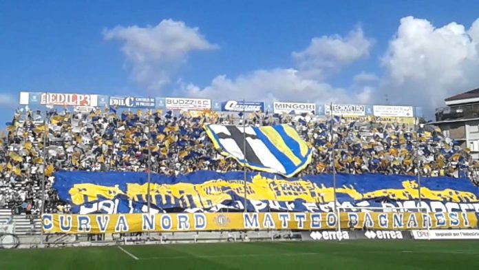 Curiosità: -Nel recentissimo Parma-Napoli del 24 febbraio ’19 (25^ giornata campionato in corso) esposti gli striscioni “Ciao Ita fratello blucerchiato” e “Mau ovunque” in ricordo dell’ultrà pisano Maurizio Alberti, scomparso circa 20 anni fa a La Spezia, per negligenza nei soccorsi dopo esser stato colto da infarto dopo scontri coi padroni di casa. -Esposto il significativo striscione “Per chi è tornato e per chi tornerà siete la forza del gruppo e l’orgoglio della città” per Parma-Inter del 9 gennaio ’19, sfda in cui non è stato fatto entrare lo striscione “Rispetto per Dede”, al secolo Daniele Belardinelli, leader dei Blood Honour Varese, strettamente gemellati con gli interisti, cosa che aveva fatto diventare l’Inter per “Dede” la sua seconda squadra, morto in seguito a scontri tra fazioni interiste e napoletane, investito da un suv, con dinamiche che hanno riportato alla mente la morte del povero Matteo Bagnaresi. -Prima di Juve-Parma (3-3) del 2 febbraio 2019 visita all’autogrill Crocetta Nord, vicino Asti, sull’A21 Torino-Piacenza, dove morì “Bagna”: in suo ricordo cori, fiori e sciarpe. -In Forlì-Parma del febbraio 2016 era in mezzo agli ultras a fare il tifo: non poteva giocare a causa della squalifica subita la domenica precedente in Parma-Ribelle, quando estrasse dai pantaloncini un passamontagna gialloblù ed esultò sotto la curva indossandolo, beccandosi il secondo “giallo”. Yves Baraye è stato il simbolo della risalita del Parma dalla Serie D alla A e la Curva Nord, che avrebbe voluto che la punta debuttasse in Serie A, prima di passare al Padova nel recente mercato di gennaio, gli ha dedicato gli striscioni “Cuore, grinta e umiltà da quel passamontagna ai gol nei derby fino alla Serie A” e “Grazie Baraye”, in occasione di Parma-Spal del 27 gennaio ’19. -A Udine, il 19 gennaio 2019, esposta la scritta “Prezzi popolari per stadi popolati”, contro il caro-biglietti imperante in generale, comunque a favore di prezzi davvero popolari come quello di 20 €. pagato a Udine. Anziché indignarsi per i cori “discriminatori” e poi far disputare la finale di Supercoppa italiana Juve-Milan in un Paese che discrimina le donne, anziché riempire gli stadi di mangia-hamburger sulla falsariga di un modello d’oltreoceano che qua non attecchirà mai, i vertici del calcio dovrebbero cominciare ad ascoltare il popolo. -Per Parma-Roma del 29 dicembre 2018 esposto lo striscione “Ciao Dede” (vedi sopra), cosa fatta anche dai romanisti. -Splendida scenografia allestita dalla Nord in occasione di Parma-Bologna del 22 dicembre ’18, richiamo storico nella ricorrenza dei 2200 anni dalla nascita di Parma, purtroppo in leggero ritardo rispetto alla ricorrenza esatta: un bellissimo telone copricurva, tanto bello che sembra un quadro, con dipinta la città di Parma, le scritte “Parma” e “Boys Parma 1977” ed in basso lo striscione in latino “Hostis turbetur quia Parmam vigo tuetur”, ovvero “Tremi il nemico perché Parma è sotto la protezione della Vergine”. -Esposto l’eloquente striscione “Biglietti a 10 €….un esempio per tutti”, oltre a “Ultras liberi”, in Sampdoria-Parma del 16 dicembre ’18. -Esposti in Parma-Chievo del 9 dicembre 2018 gli striscioni “Tino Zivo Emiliano…nel cuore” e “Sconfigger l’uragano non si può…bentornati a casa ragazzi”, che non hanno bisogno di commenti. -Incredibile quanto avvenuto agli emiliani nella trasferta di Torino del 10 novembre ’18 per Torino-Parma: i solerti tutori dell’ordine non hanno fatto entrare nessun strumento di tifo, compreso il glorioso striscione con le due stelle “Boys”, per cui per protesta sono tornati giustamente a Parma senza entrare. Un comportamento assurdo di funzionari frustrati, che sulla scia delle polemiche sollevate dopo il servizio del programma televisivo “Report”, sul bagarinaggio vergognoso in curva “Scirea” della Juve, hanno pensato bene di applicare alla lettera una restrizione che coniata alcuni anni fa sembrava ormai messa da parte. A niente sono serviti i ripetuti inviti al buonsenso, alla consegna dei documenti da parte dei responsabili del gruppo e interventi esterni da parte della società. -Coreografia semplice ma di stile, ben riuscita, con in basso la scritta “Se vincitori non saremo superbi, se vinti risorgeremo!”, per Parma-Frosinone del 4 novembre 2018. -Esposto lo striscione “Stefano Cucchi: la verità non è un film” in Parma-Lazio del 21 ottobre ’18, riguardo alle tristemente note vicende del 31enne geometra romano morto nel 2009, narrate dal film “Sulla mia pelle”, presentato alla Mostra del Cinema di Venezia, a seguito di violente percosse (ormai non ci sono più dubbi) ricevute da alcune guardie carcerarie, durante la custodia cautelare, dopo essere stato trovato in possesso, in seguito a una normale perquisizione, di 21 gr. di marijuana, 3 dosi di cocaina e una pillola per l’epilessia, malattia di cui soffriva. Da questa partita, inoltre, sarà possibile acquistare la t-shirt creata in seguito al crollo del Ponte Morandi di Genova del 14 agosto ’18 dai gruppi della Sud doriana e della Federclubs, al baracchino del materiale in Curva Nord con un’offerta minima di 5 €. Raccolti fondi per 1500 €. che saranno adoperati in favore degli sfollati per la tragedia che costò 43 vittime, non serve aggiungere altro… -Bella coreografia allestita in Parma-Juve del 1° settembre ’18: copricurva al centro con lo stemma del Parma e la scritta “Parma siamo noi” e cartoncini gialli su un lato e blu sull’altro. -Parma-Udinese (1^ giorn.campionato di A 18/19) del 19 agosto 2018 si gioca dopo l’estate dei fatti giudiziari di La Spezia, un’estate d’incertezza sospesa tra Serie A e B, dopo la presunta combine basata su sms scambiati tra i giocatori del Parma Calaiò e Ceravolo e alcuni giocatori dello Spezia, che non ha giovato certo all’ambiente ultras parmense, 