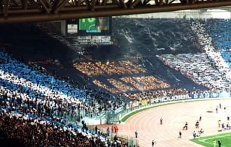 a Lazio annuncia l’acquisto del fuoriclasse inglese, già protagonista a “Italia ‘90”, Paul “Gazza” Gascoigne. “It’s ready for you”, stendardo gigante raffigurante una pinta di birra, dà il benvenuto all’asso inglese. L’anno dopo continua la “Gazza mania” con tantissime bandiere britanniche e maschere. A Capodanno 1991 a Roma, due nordafricani vengono accoltellati nel parco di Colle Oppio, con la tifoseria laziale subito tirata in ballo. Alcuni aggressori fanno parte dei “Viking”, dice la Questura, ma la curva non ci sta e attua un nuovo sciopero. Campionato mediocre nel 91/92, coi tifosi che accusano i giocatori di scarso impegno, così col Verona uno striscione annuncia “Noi come voi già in vacanza!”, con spazio a gommoni, ciambelle e canotti…Nel 1992 arriva Cragnotti e la Lazio torna ai vertici del calcio italiano e europeo. I Viking tolgono il proprio striscione per far spazio ad uno con la scritta “Non omologati”. Novità all’”Olimpico”: per la prima volta dopo tanti anni, anche la Sud torna a sostenere la Lazio, coi ragazzi del “Nucleo” che animano questo settore. La Nord volta pagina con un tifo prettamente anglosassone, ha un nuovo assetto. Il 18 aprile 1993, durante il derby di ritorno, si tocca l’apice della english-mania con una miriade (circa 6000) di stendardi goliardici e fantasiosi. La svolta è anche nelle pezze in balconata, al posto degli striscioni, che induce la Sud romanista a ideare lo striscione “Levate quei stracci che so’ asciutti”. In quel periodo sotto il tabellone c’è sempre la scritta “S.S.Lazio” e pezze come “06”, “Senza tregua”, Since 1900”, “Zoccolo duro”, I don’t mineral water”, “tuca tuca” e altre ancora, anche di quartiere. Nel 1993/94 in estate viene organizzato all’”Olimpico” un triangolare con Roma e Cagliari, ma i laziali contestano: “Lazio e Roma non possono disputare gare amichevoli, c’è troppa rivalità”. La serata viene boicottata dalla Nord, scoppiano incidenti con le forze dell’ordine. Il 6 marzo 1994 si gioca il primo derby in notturna di campionato. La Nord ammonisce: “No al calcio tecnologico”, precursori anche in questo gli Irriducibili “denunciano” il calcio in televisione. Una coreografia d’effetto colora la Nord con due braccia tese che sorreggono una sciarpa “popular” con la scritta “C’mon guys”, sul tartan centinaia di stendardi. Nel 94/95 in Nord torna il glorioso striscione “Ultras”. Il 15 gennaio ’95 la Nord partorisce la sua nuova rivista ufficiale, titolo “La voce della Nord”. Domenica 11 giugno 1995 Cragnotti annuncia: “Ho ceduto Signori al Parma per 25 miliardi di lire”. Ne seguirà un’autentica sommossa popolare al grido “Signori non si vende”, sotto la sede di Via Novaro. Grande tensione, è la protesta del calcio moderno, del cuore contro i miliardi. I tifosi non ci stanno e vincono facendo interrompere ogni trattativa. Alle 19,30 la notizia ufficiale: “Signori resta alla Lazio ma io vado via!”, annuncia il patròn, che in realtà rimarrà ancora per qualche anno. Nella stagione 96/97 Signori realizza il centesimo gol in maglia biancoceleste e la Nord lo ricambia con una coreografia che ritrae cento immagini del bomber e la scritta “100 volte grazie!”. Verrà incoronato e dipinto su uno stendardo dove pare vero, disegnato magistralmente dall’artista “Disegnello”, l’autore di tutte le scenografie in curva Nord, al secolo Massimo Di Clemente, su cui è scritto “La Nord incorona il suo re”. “Disegnello”, tautore professionista, si laureò con 110 e lode all’Accademia delle Belle Arti. L’anno dopo la Nord sciopererà per le botte di Napoli prese dalle forze dell’ordine (vedi sezione “Curiosità”) fino alle finali di Coppa Italia e Coppa Uefa, la prima vinta, la seconda persa. Nel 98/99 la Lazio vince la Supercoppa italiana, con 6mila fedeli che invadono il “Delle Alpi” (2-1 alla Juve). Nel ’98 gli Irriducibili abbandonano lo stile-british per tornare allo striscione tradizionale, che per la verità era apparso nel periodo filo-anglosassone alcune volte, soprattutto nei derby. Si torna all’antico, per recuperare vecchi valori e per la voglia dei più giovani, sentitisi smarriti, di identificarsi dietro uno striscione, senza abbandonare il carattere spontaneo, ma anche senza più sezioni o dissapori. La Lazio nel ‘99 perde lo scudetto per un punto, fatale il pareggio di Firenze, ma si rifarà tre giorni dopo a Birmingham, vincendo la Coppa delle Coppe contro il Real Maiorca, seguita migliaia di tifosi. Nel 1999/2000 la Lazio più forte della storia si aggiudica il secondo scudetto, che però non avrebbe vinto senza l’aiuto dei suoi tifosi, che l’hanno sorretta non solo sugli spalti, ma anche scendendo in piazza, per manifestare la propria rabbia contro i continui torti arbitrali, di nuovo a Via Allegri davanti la Figc, che uno dopo l’altro hanno fatto sbottare il popolo laziale, con la classica “goccia che fa traboccare il vaso” rappresentata dal gol regolare di Fabio Cannavaro del Parma, annullato senza apparente motivo dall’arbitro De Santis in Juve-Parma 1-0. Viene inscenato un funerale per le vie di Roma fino ad arrivare allo stadio, facendo entrare una bara in curva Nord, con la scritta “Il calcio italiano è morto!”. A Via Allegri corteo con in testa lo striscione “spareggio o guerra!”. Nel corso degli anni 2000 la Nord continua ad essere guidata dagli Irriducibili. Insieme a loro i vecchi CML. ’74, i “Viking”, che però nel 2005 si scioglieranno, gli “Ultras”, gli “Anni ‘70”, il “Manipolo”, i “Lazio Fans” e la “Banda Noantri”, che nasce nel 2000 per sciogliersi nel 2005, schiacciata dalla repressione (numerose diffide, arresti, problemi interni), con molti ragazzi della “Banda” che nel 2007 andranno a formare “In Basso a Destra”. In Tribuna Tevere, oltre ai “Veterani”, c’è anch