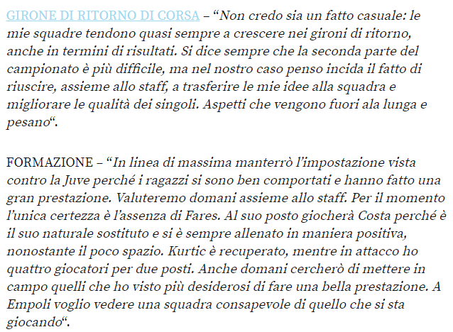 Non mi piace il suo gioco, ma lo rispetto come tecnico. Mai sopra le righe anche come persona. Risposta