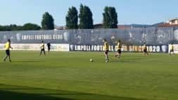La cosa nuova, rispetto alle giornate precedenti, è stato l’assetto tattico sul quale mister Giampaolo ha posto l’attenzione: si è provato costamente il 3-5-2, modulo che a Empoli rappresenta davvero una novità quasi assoluta. Nel primo gruppo la formazione era così composta: in difesa un trio comprendente, da destra a sinistra, Laurini, Tonelli e Bruni; Ronaldo in posizione di vertice basso, con ai suoi lati Saponara e Fantacci, e il duo Mario Rui-Brillante a presidiare le fasce. In attacco la coppia Tavano-Maccarone. Nel secondo gruppo hanno invece trovato spazio, sempre con lo stesso modulo: Martinelli, Borghini, Dermaku in difesa; Hysaj e Croce esterni a centrocampo, Diuossé vertice basso e al suo fianco Krunic e Picchi. In avanti Piu e Pucciarelli.