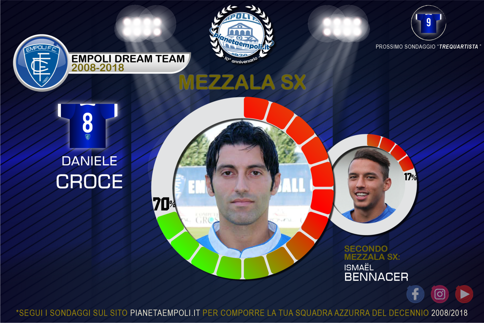 Chiunque abbia un minimo il polso della piazza empolese non poteva avere dubbi sull’esito finale di questo sondaggio, ed infatti Daniele Croce stravince la consultazione con il 70% delle preferenze. Risultato mai messo in discussione durante il periodo di apertura delle nostre urne virtuali, con il prestigiatore che stacca da subito nettamente tutta la concorrenza e si invola al traguardo con una percentuale bulgara.
