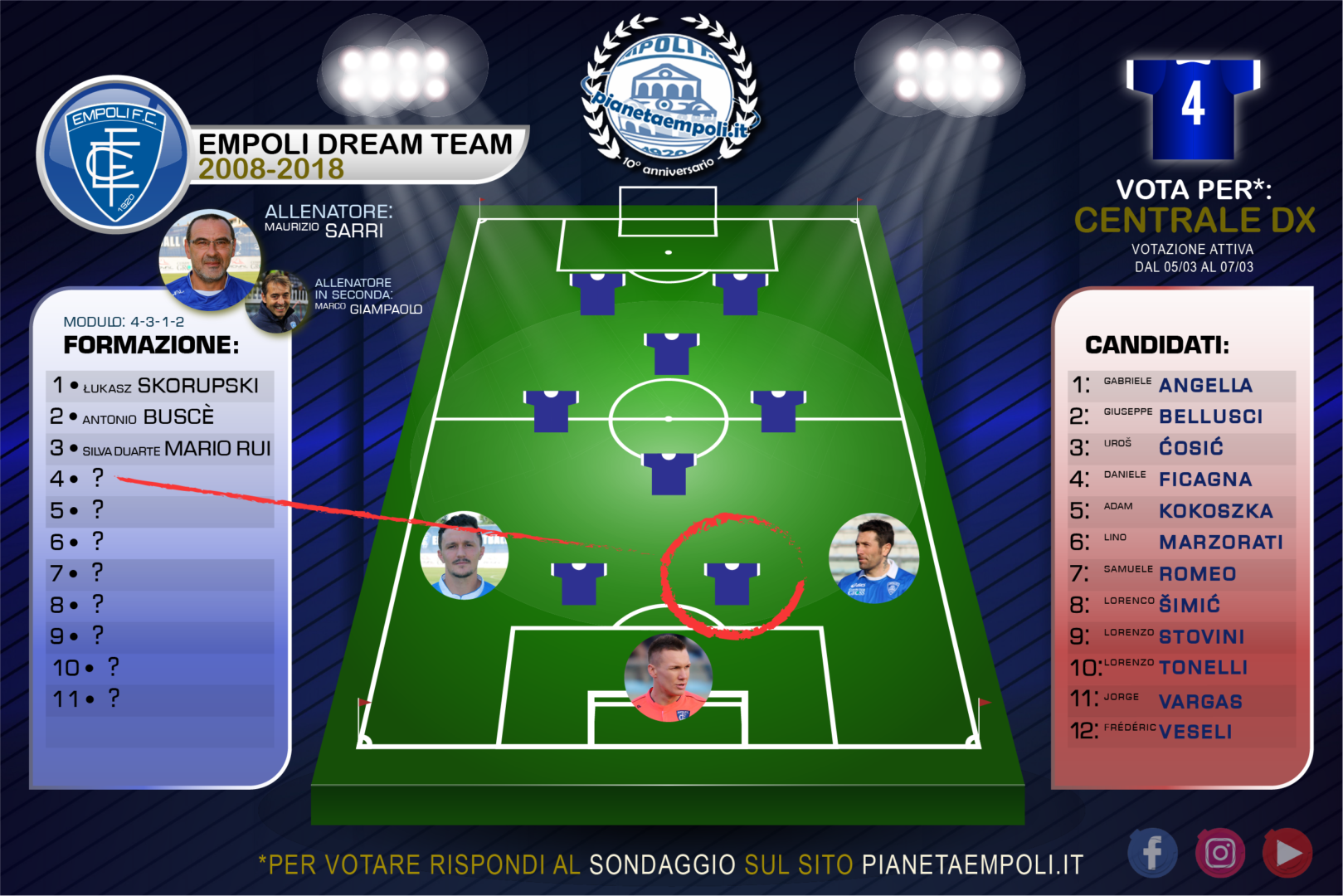 Votato Tonelli, ma Vargas è stato il top precedentemente (anche Stovini).