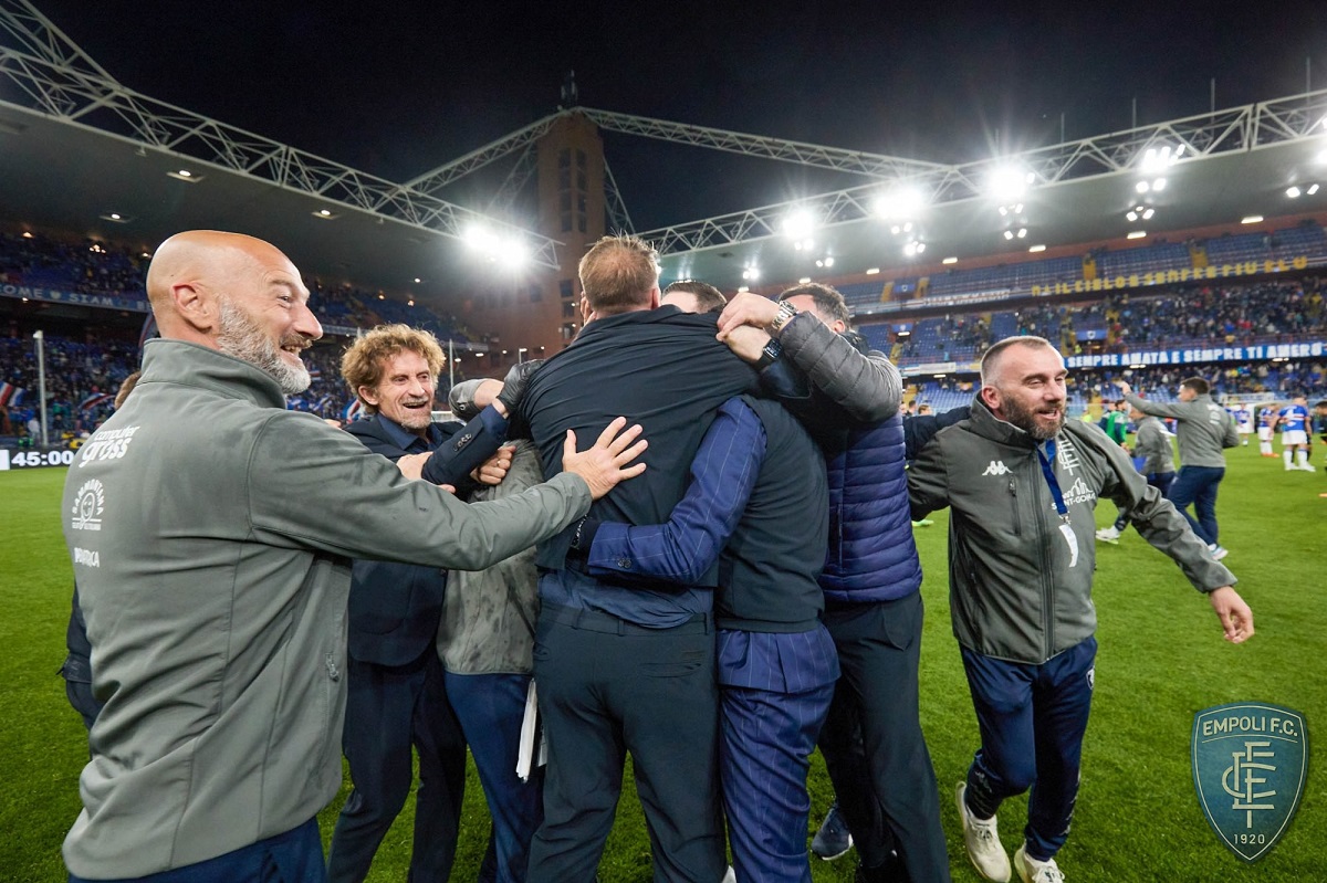 Il pezzo odierno del giorno dopo sarà molto stringato, perchè ci sono dei momenti in cui i dettagli che tanto ci piacciono devono essere messi da parte per godere dell’unica cosa che conta: il risultato sportivo. E la gara di Genova ci ha portato a casa proprio questo, proprio quel punticino che serviva per dire basta e mandare positivamente in archivio una stagione che certo non era iniziata con i favori del pronostico. Un punticino agguantato alla fine, alla fine di una partita certo non giocata al meglio, ma arrivato perchè la squadra ci ha comunque creduto fino all’ultimo pallone giocabile. Ed allora questo è unicamente il tempo della festa, dei complimenti, dei ringraziamenti. Dovrebbe essere anche il tempo delle scuse, scuse che tanti dovrebbero fare al tecnico azzurro che a testa bassa e senza mai uscire da un atteggiamento propositivo, ha portato a casa quello che si chiedeva. Attenzione, a due punti c’è la classifica dello scorso anno… potrebbe anche far meglio. Una stagione che poi, con calma ed a bocce ferme, analizzeremo nei sui tanti pro ed in qualche contro. Ma il secondo anno in serie A non è mai facile, invece questa squadra ha saputo tagliare il traguardo e lo ha fatto senza mai essere realmente invischiata nelle zone basse. Un plauso anche alla dirigenza che ha saputo nel mercato di gennaio colmare alcune lacune ma che a giugno scorso ha saputo ricostruire quasi da zero un gruppo generoso e capace. Non sono pochi gli acquisti che non hanno fatto strappare i capelli e che poi si sono dimostrati più che funzionali; quello di Akpa Akpro forse in cima alla lista. E poi c’è stata l’ennesima valorizzazione dei giovani, perchè due come Baldanzi e Fazzini sono già sulla bocca dei più importanti club italiani. Oltre che la valorizzazione di almeno un paio di giocatori il cui cartellino, già pesante, è ulteriormente lievitato con buona soddisfazione delle casse di Monteboro. Ed allora godiamocela tutta, festeggiamola come si deve ed ancora una volta siamo orgogliosi di essere empolesi. Da capire adesso saranno le condizioni di Waluckiewicz uscito infortunato dalla gara. La ripresa degli allenamenti sarà per domani, in attesa di capire se la gara con la Juve si giocherà lunedi o martedi prossimo: se i bianconeri vanno in finale di EL, si gioca lunedi, altrimenti si va a martedi sempre alle 20:45. Non c’è altro da aggiungere quest’oggi, semmai dirvi che per questo appuntamento del giorno dopo stiamo studiando qualcosa di diverso per la prossima stagione, un format video che proveremo a studiare sperando possa essere più coinvolgente.