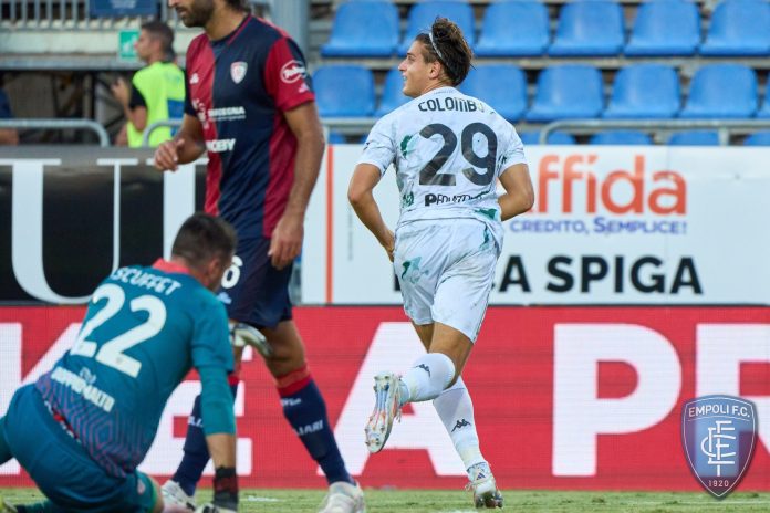 D’Aversa, rientrato in panchina dopo le quattro giornate di squalifica, perde nel riscaldamento Maleh per un risentimeno muscolare, inserendo così sulla trequarti l’inglese Anjorin. Per il resto formazione uguale a quella che ha fermato la Juventus, con Colombo ed Esposito davanti ed un modulo che è un 3-5-2. Ci si aspetta subito l’arrembaggio sardo ma primo tiro è proprio dell’Empoli, al 5′ Pezzella ci prova al volo, palla che termina sull’esterno della rete. Il Cagliari si fa vedere in avanti al 17′, su calcio d’angolo Vasquez esce a vuoto, per sua fortuna e dell’Empoli ci pensa Esposito a salvare sulla linea il colpo di testa di Luvumbo. La partita non regala grandi emozioni, a causa della poca pulizia tecnica e del gioco molto spezzettato. A sbloccare la gara all’improvviso è l’Empoli, grazie ad Anjorin che al 31′ serve perfettamente il taglio di Colombo, che a tu per tu con Scuffet non sbaglia, insaccando in rete col mancino. Secondo gol stagionale per l’ex Monza. La formazione sarda reagisce al 37′ Luvumbo sfugge a Viti, ma è bravissimo questa volta Vasquez a uscire e togliere la palla dai piedi dell’attaccante avversario. All’inizio della ripresa Nicola sostituisce Makoumbu per Pavoletti, mentre D’Aversa torna in campo con gli stessi undici. Bastano tre minuti agli azzurri per realizzare il raddoppio. Pezzella vince ancora una volta il duello con Zortea e dalla sinistra crossa il pallone sul secondo palo per Esposito, che calcia col destro trovando al respinta di Scuffet, la palla torna all’ex Inter, che manda al bar con una finta Luperto e col destro scarica la sfera in porta per il 2-0. Sotto di due gol, il Cagliari si getta in avanti in maniera frenetica mentre D’Aversa tenta di coprirsi per difendere il risultato. Al 71′ i rossoblu si mangiano il gol del 2-1 con Gaetano che che si coordina in semi-rovesciata, la sua conclusione finisce fuori di pochissimo. Al 75′ Cacace sigla il gol del 3-0, ma l’arbitro annulla tutto per una posizione di fuorigioco di Esposito, autore del cross. Con il Cagliari tutto in avanti l’Empoli attacca soprattutto in contropiede. All’82’ Esposito sfiora la doppietta con un bellissimo tiro da fuori che sfiora la traversa. Nei minuti di recupero il Cagliari sfiora il gol, ma a mettere il lucchetto alla porta è Vasquez, che compie un intervento miracoloso sul tapin vincente di Gaetano. Il muro azzurro tiene fino al triplice fischio, che sancisce il 2-0 definitivo per l’Empoli. Azzurri in paradiso, contro ogni pronositico, Nicola nella seva dei fischi, contro ogni pronostico.