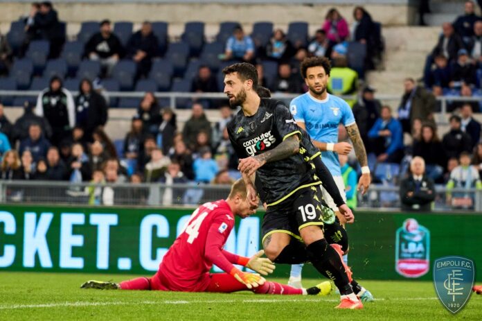 Azzurri in campo con il 4-3-1-2 con la conferma del tandem offensivo Caputo-Satriano e Fazzini dal primo minuto come mezzala sinistra. Lazio invece con il 4-3-3 con Luis Alberto nei tre in mezzo e Immobile al centro del tridente. La gara per l’Empoli si mette da subito in salita. Passano due minuti e da un calcio d’angolo di Luis Alberto, Felipe Anderson attacca il primo pallo e devia la sfera alle spalle di Vicario. Dopo una fase di equilibrio in cui gli azzurri cercano spazio per incunearsi nella difesa laziale, è la squadra di Sarri ad avere la palla del raddoppio con Zaccagni che, servito da un cross di Lazzari, manda a lato da buona posizione. L’Empoli c’è e tenta di reagire alla rete iniziale prendendo l’iniziativa. La Lazio pare gestire lo svantaggio, rendendosi pericolosa su azione d’angolo con Luis Alberto che pesca Milinkovic Savic, colpo di testa alto sopra la traversa. Prima frazione che si chiude con il vantaggio della Lazio firmato da Felipe Anderson. La ripresa inizia con gli stessi ventidue. Prima occasione che capita ad Immobile, impreciso di testa su azione d’angolo. Al 55’ arriva il raddoppio della Lazio con Zaccagni, abile a raccogliere un tiro sporcato di Felipe Anderson ed a scavalcare il portiere azzurro. Subito dopo mister Zanetti manda dentro Bandinelli per Grassi e Cambiaghi per Baldanzi. Al 60’ l’Empoli sfonda sulla corsia di destra con Fazzini, bel cross per il colpo di testa di Caputo alto di poco. Quando si accende la Lazio è pericolosa: destro dalla distanza di Milinkovic Savic spinta sul palo da Vicario. Grande parata del portiere azzurro. Sul proseguo dell’azione Immobile è in fuorigioco. Al 68’ dentro anche Ebuehi e Pjaca per Stojanovic e Satriano. Gli azzurri hanno il merito di restare in partita e da una ripartenza rapida orchestrata Bajrami e condotta da Cambiaghi, Caputo è freddo quanto serve per battere Provedel. Siamo al minuto 83. L’Empoli c’è, è vivo ed ha il cuore di andarsi a prendere il 2-2 con Razvan Marin, che raccoglie la palla al limite dell’area dopo un corner e supera Provedel con una conclusone splendida: 2-2 a tutto il settore ospiti in visibilio. Altro mattoncino di quelli importanti per il nostro scudetto.