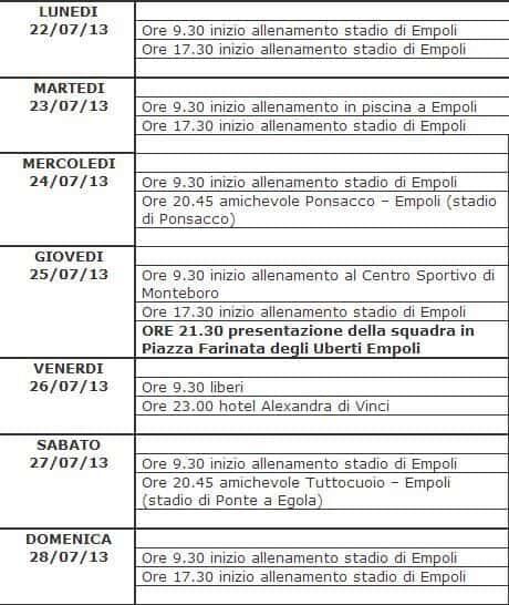 La segreteria sportiva dell’Empoli ci ha girato il programma della prossima settimana della squadra azzurra.