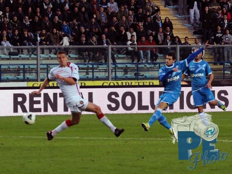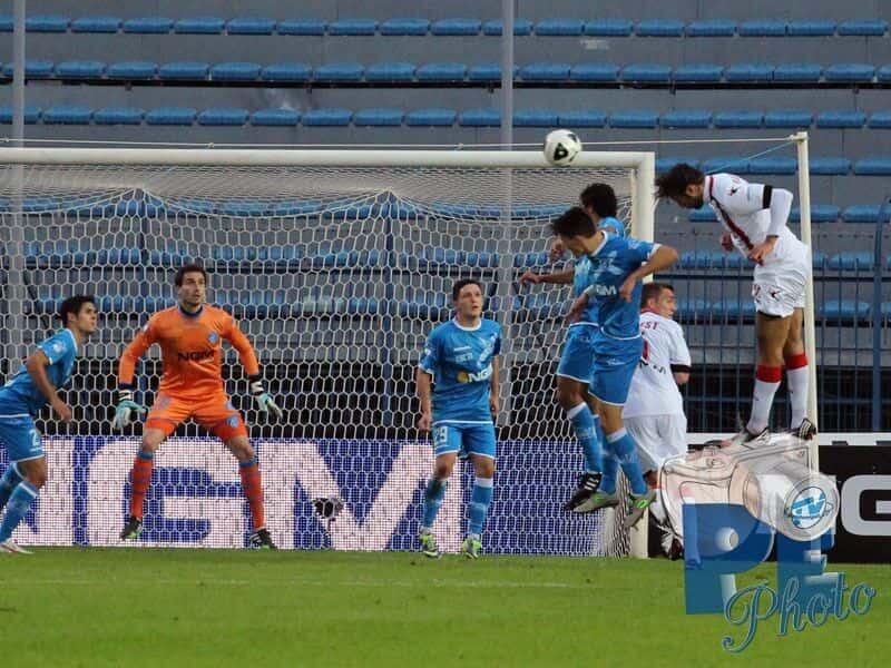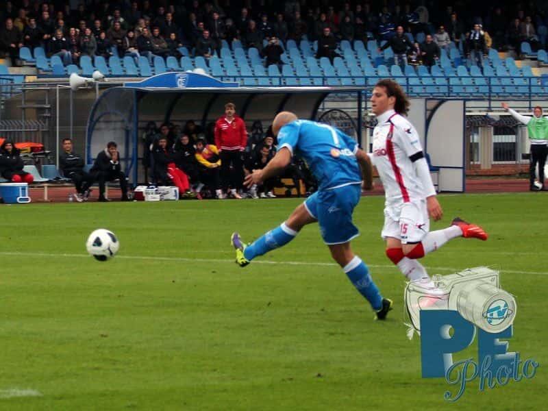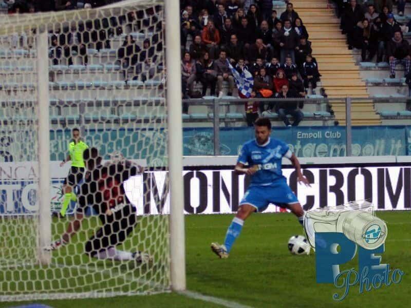 L’Empoli parte fortissimo impegnando fin da subito Sepe: prima Verdi chiama il portiere ospite alla presa in due tempi, poi ci prova Tavano con un insidioso rasoterra che termina pochi centimetri a lato del palo della porta rossonera. Azioni che rappresentano il preludio al goal azzurro che arriva al 10′: Verdi, oggi ispiratissimo, si disimpegna sulla fascia e lancia Maccarone in area che controlla e batte con un botta secca di destro il portiere lancianese in uscita. La potenza della conclusione e la rabbia dell’esultanza testimoniano tutta la voglia del bomber azzurro di dare sfogo alla frustrazione patita per i risultati delle ultime giornate, dove i ragazzi di Sarri hanno raccolto molto meno di quanto seminato. Il Lanciano dal canto suo reagisce dando l’impressione di non aver subito il colpo e impensierendo la retroguardia empolese in più di un’occasione. La gara è vivace e combattuta su entrambi i fronti, dove da una parte i rossoneri sfiorano il pareggio con Piccolo e dall’altra gli azzurri potrebbero raddoppiare con Tavano, ma il risultato non cambia e l’arbitro manda le squadre negli spogliatoi per l’intervallo.