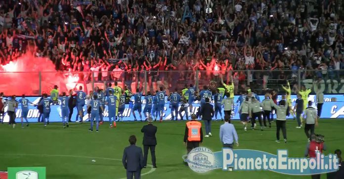 Un Empoli imbattuto sotto la gestione Andreazzoli. Un record incredibile che si aggiunge a questa splendida cavalcata, una scommessa non vinta ma stravinta. L’uomo che non ti saresti mai aspettato come sostituto dell’esonerato Vivarini, l’uomo intorno al quale per lo più c’era scetticismo e poca fiducia sulla possibilità di arrivare a quel traguardo che la società aveva dichiarato battendo i pugni sul tavolo. Lui, come abbiamo detto ormai tantissime volte, ha saputo prendersi giorno dopo giorno tutto l’ambiente e soprattutto ha saputo entrare nelle teste dei calciatori dando loro quella mentalità che evidentemente mancava per poter salire quello scalino che potesse permettere ad un gruppo considerato comunque forte, di ottenere quanto ottenuto. Anche ieri il mister ha voluto prima di tutto giocare la partita, prima di tutto mettere dentro quei valori che hanno contraddistinto questi ultimi cinque mesi, per poi anche lui lasciarsi andare ai meritati festeggiamenti ed alle giustificate proiezioni verso la sfida ancora più emozionante che lo aspetta tra tre mesi. E cosi come il mister, tutta la squadra anche ieri ha voluto congedarsi al meglio e rimarcando chi è stato il padrone incontrastato di questa categoria. Bello lo spettacolo sugli spalti, non c’è stato quel tutto esaurito del 2014 ma c’è stata comunque grande partecipazione ed una coreografia che ha accompagnato l’ingresso in campo degli eroi. Bravi poi tutti i tifosi nel rispettare le regole e non fare invasione in campo, godendosi dopo la squadra per le vie della città.