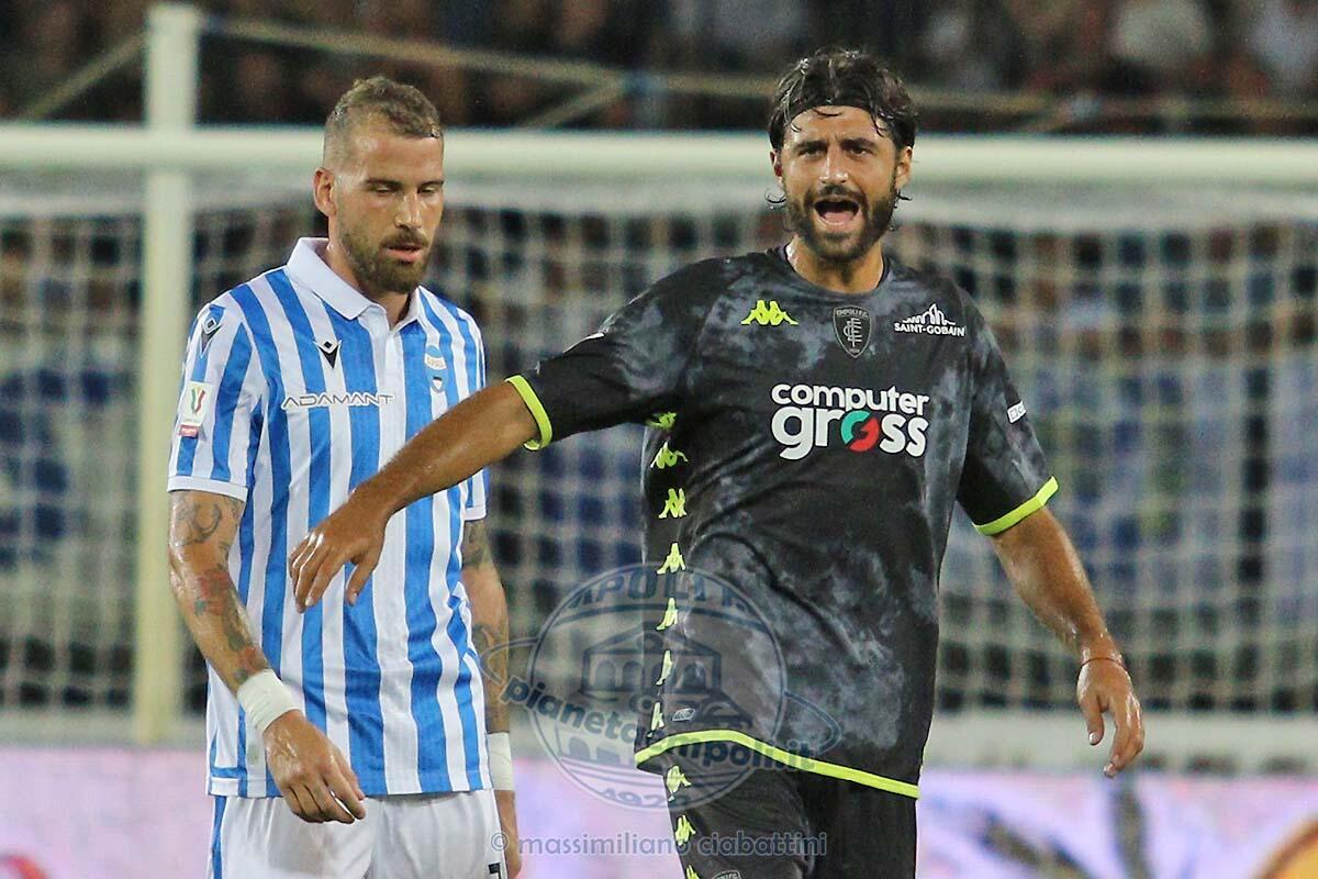 Passa la Spal al Castellani e lo fa al termine dei tempi supplementari andando a vincere in rimonta per 2-1. Non è tutto da buttare ma ci sono da rivedere sicuramente diverse cose e ad una settimana dal campionato il lavoro non manca per mister Zanetti. La gara regolare nei novanta minuti si chiude sul punteggio di 1-1 con il vantaggio azzurro di Cambiaghi al 79’ ed il pareggio di Dickman per la Spal un minuto e mezzo più tardi. Una partita sulla quale resta difficile poter esprimere un giudizio veritiero visto che si lavora da meno di un mese ed il gran caldo condiziona non poco. Qualcosina in più però ci si aspettava, soprattutto da alcuni singoli, soprattutto in un primo tempo in cui la manovra ha faticato non poco a svilupparsi. La gara la cambia decisamente con l’ingresso di Cambiaghi per Destro nella ripresa, davanti c’è maggiore imprevedibilità e cresce tutto il reparto con l’Empoli a mettere dietro la Spal. Al 79’ arriva il vantaggio dei neri con Cambiaghi che impatta bene dopo una respinta del portiere su tiro di Bajrami. Purtroppo poco tempo dopo viene scodellata una palla sulla destra nella nostra area e Dickman pareggia. Succede poco ed i supplementari sono inevitabili. Gli extratime dicono meglio l’Empoli nel primo tempo, meglio la Spal nel secondo ed in quel secondo all’ultimo minuto arriva il gol partita segnato da Arena di testa. Si chiude subito l’avventura degli azzurri in Coppa, non certo un dramma (è già successo ed il campionato poi ha detto bene) ma sicuramente c’è da lavorare su una squadra che al momento sembra tutt’altro che rafforzata rispetto al passato. Si conferma la tradizione della terza maglia in casa ed onestamente (almeno non lo abbia chiesto la Spal) troviamo assurda questa scelta.