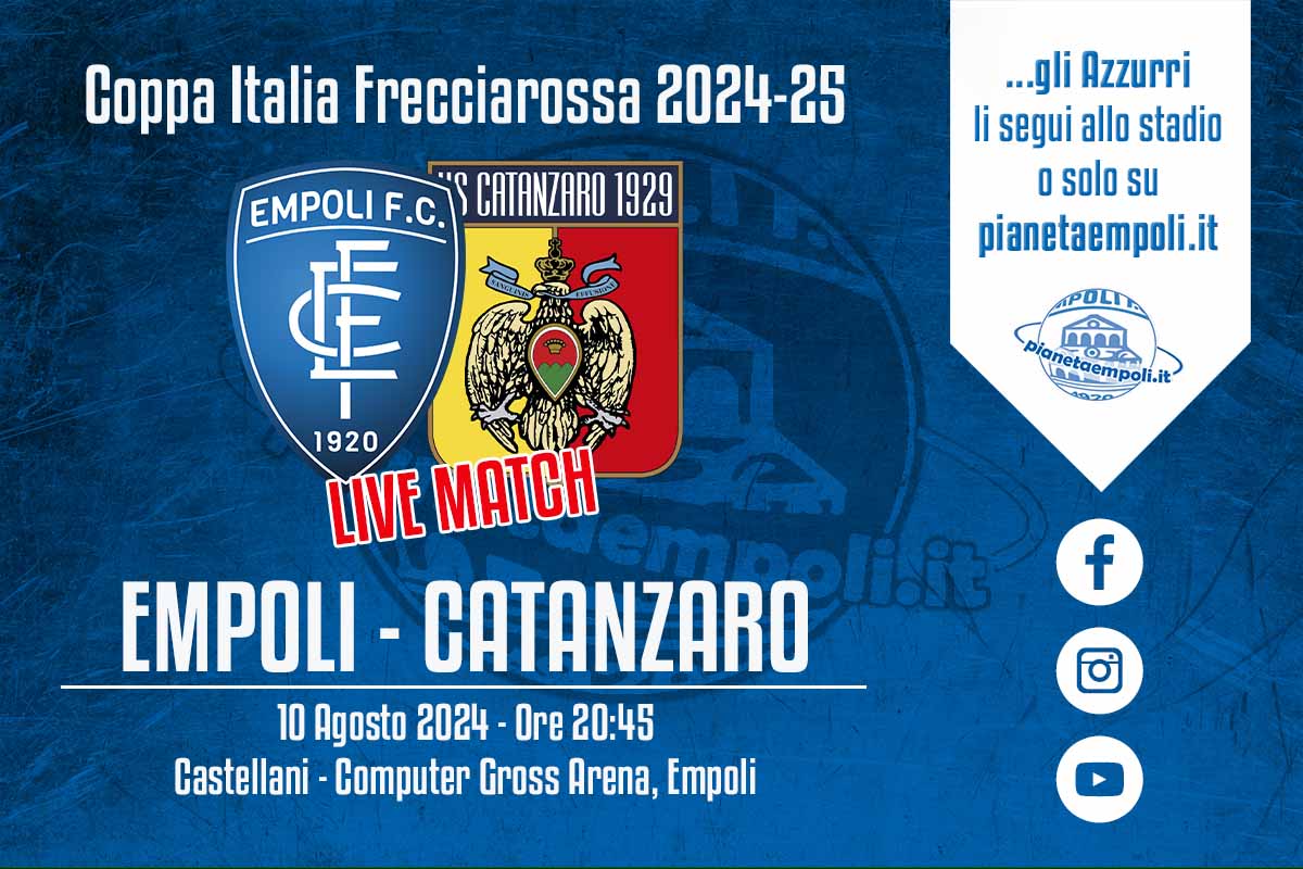 Finalmente, dopo due anni, torniamo a superare il primo turno di Coppa Italia. Gli azzurri sconfiggono in casa il Catanzaro per 4-1. Empoli avanti con Fazzini, poi pareggio calabrese di Bonini nel primo tempo. Nei primi dieci minuti del secondo tempo colpiscono Colombo ed Esposito. Al 93’ la chiude Fazzini con una meravigliosa azione personale. Buona la prova dei nostri che soffrono un po’ nella seconda parte del primo tempo ma per il resto c’è sempre stato pieno controllo della partita. Dominio assoluto nella ripresa. Si vede che ancora non funziona tutto perfettamente, ma sarebbe strano il contrario. Ovviamente l’avversario, per quanto ci abbia messo impegno, ha palesato dei limiti, come in occasione dei gol azzurri, dove però si deve registrare il cinismo e la precisione di chi ha finalizzato. Non sempre è cosi. La squadra ha lavorato bene in pressione ed ha saputo sviluppare delle trame interessanti. Qualche errore di troppo nell’ultimo passaggio e qualche errore di posizione sulle palle inattive contro. Tutte cose sulle quali mister D’Aversa lavorerà nei prossimi giorni, anche in attesa di ulteriori novità dal mercato. La squadra si è fatta apprezzare per reattività e per aver saputo rientrare in campo nel secondo tempo, con l’inerzia in quel momento a sfavore, con grande impeto. Partita magistrale di Fazzini che gioca sulle nuvole e segna pure una doppietta, ma si è fatto molto apprezzare anche il giovane Marianucci mandato in campo a sorpresa dal primo minuto. Non ci sarà in campionato ma si è vista l’importanza di Grassi in campo per la gestione delle due fasi; Grassi che sarà il capitano! Molto positive anche le prove dei nuovi Colombo ed Esposito e non solo per i gol, con il primo che ha colpito anche un palo pieno. Legno colpito nel finale anche da Stojanovic. Peccato per l’errore grave di Vasquez in occasione del gol calabrese, ma la prima l’ha steccata anche Vicario. Empoli dunque avanti in Coppa e morale alto, dalla settimana prossima si alza di molto l’asticella.