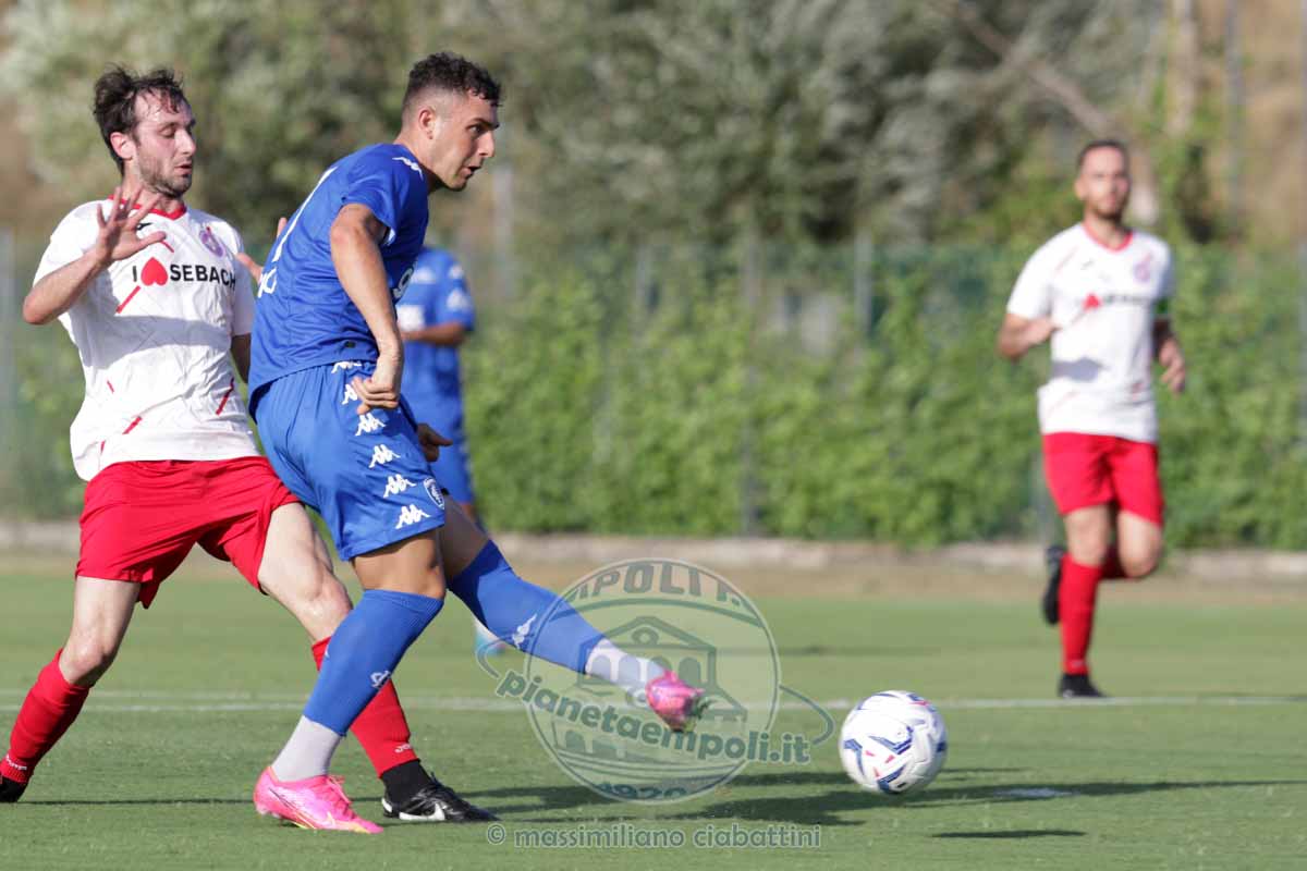 1′- Gli azzurri giocano il primo pallone di questo secondo test precampionato contro il Certaldo.