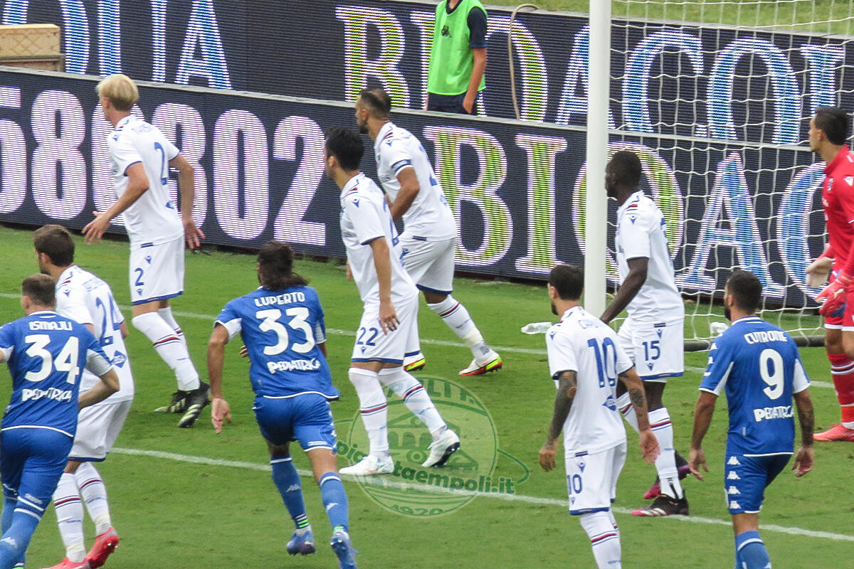 Terza gara interna e terza sconfitta. Al Castellani passa la Sampdoria per 3-0 grazie ad una doppietta di Caputo ed al sigillo di Candreva. Se si guarda alla dedizione ed alla voglia non c’è da accanirsi più di tanto, quella non manca mai e si vede che la squadra cerca di fare il possibile per i propri mezzi. Ci sono però tanti tanti problemi e la gara di oggi ci fa capire che quest’Empoli è più vicino a quello visto contro il Venezia che non quello di Torino. Male ancora la fase di non possesso in generale, male il centrocampo che non fa praticamente mai filtro, poca pericolosità nei sedici metri finali e dietro si registrano ancora degli errori individuali che vengono puntualmente pagati. Poche idee. Voglia si, ma personalità poca e forse a questa squadra manca un vero leader che sappia prendere per mano la squadra nei momenti sporchi e difficili della partita. A differenza del Venezia la Samp gioca meno sull’Empoli, un Empoli che a sua volta prova a far la partita ma che viene preso in contropiede spesso e volentieri. C’è poi la dura legge dell’ex con Caputo che (senza mai esultare) segna i suoi primi due gol blucerchiati, gol per i quali deve dire grazie anche alla sua ex squadra. Sotto die due segnerebbe un bel gol Cutrone ma si alza giustamente la bandierina e la gioia si strozza in gola, gioia che invece riesplode in curva blucerchiata dopo il tris calato da un bel gol di Candreva. L’Empoli che dovrebbe essere, quello che piacerebbe vedere, lo si ammira solo nei venti minuti finali…ma sotto di tre conta il giusto e l’onesto. Altra sconfitta da metabolizzare senza drammi, non manca il tempo e l’obiettivo e quello di metterne tre dietro, ma serve necessariamente un cambio di rotta sotto diversi punti di vista. Migliore in campo Vicario con i ragazzi subentrati nel corso del match.