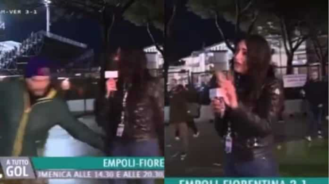 Brutto episodio al termine di Empoli-Fiorentina nei confronti di una collega giornalista di Toscana TV, nel giorno in cui è massima l’attenzione alla lotta alla violenza sulle donne. Di seguito il filmato ripreso dalla testata “labaro viola”, anche se – come dirà poi la stessa Greta Beccaglia (questo il nome della giornalista), la cosa ancora più incresciosa arriva a telecamere spente : “a telecamere spente mi si è avvicinato un altro individuo con il cappuccio che mi ha toccato nelle parti intime. Il cameraman è rimasto di stucco. Non solo, qualche minuto dopo lo stesso personaggio ha tentato nuovamente di palpeggiarmi, ma il mio collega l’ha allontanato“.