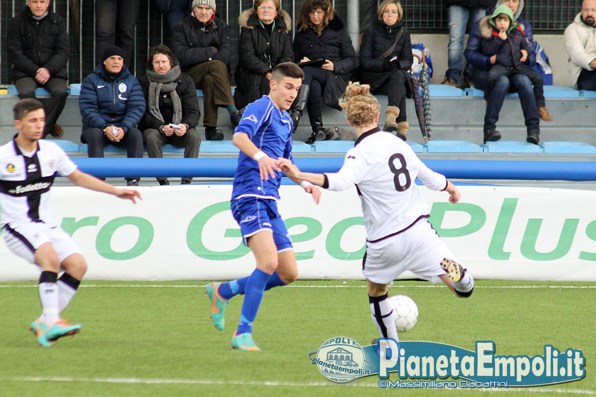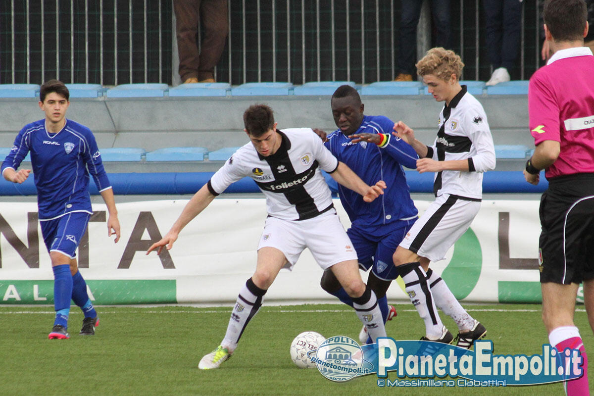 Lo scontro al vertice fra Empoli e Parma si chiude con un pirotecnico 3-4 che regala agli ospiti tre punti fondamentali nella corsa al vertice del girone, portando i gialloblu a una sola distanza dagli azzurri. Sul campo principale del centro sportivo di Monteboro i ragazzi di mister Cecchi battagliano colpo su colpo con i ducali, evidenziando però in diversi elementi una condizione atletica non brillantissima. Eppure la gara per l’Empoli pare mettersi subito sul binario giusto con la rete di Nuti dopo appena 3′ di gara, tuttavia bastano poco più di 10′ al Parma per pareggiare i conti. Gli azzurri sembrano accusare il colpo e così nell’arco di 2′ arrivano prima un ingenuo rigore, poi un’amnesia difensiva, che permettono al gialloblu Cerri di segnare la propria doppietta personale e infliggere un terribile uno-due che potrebbe mandare definitivamente al tappeto la squadra azzurra.