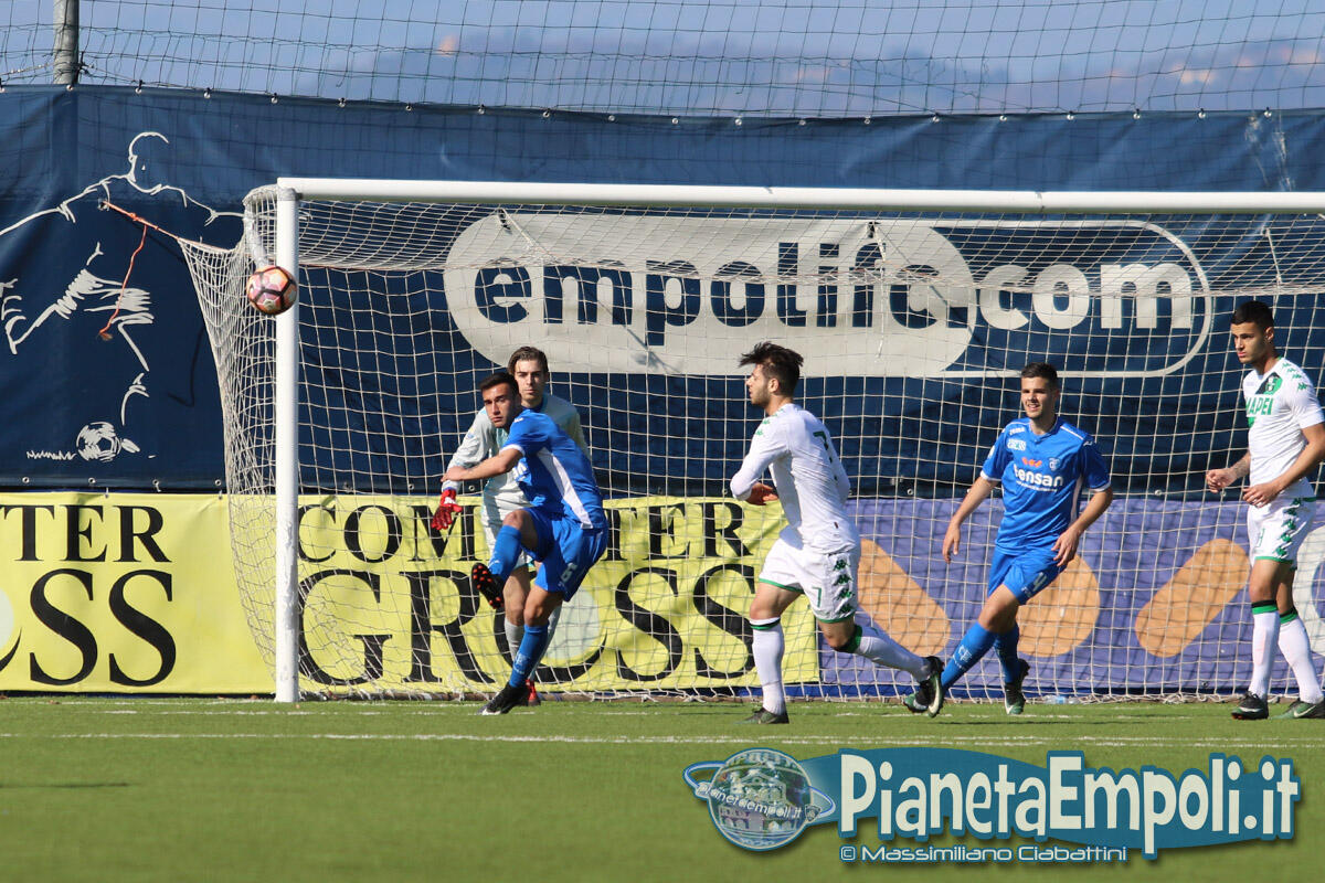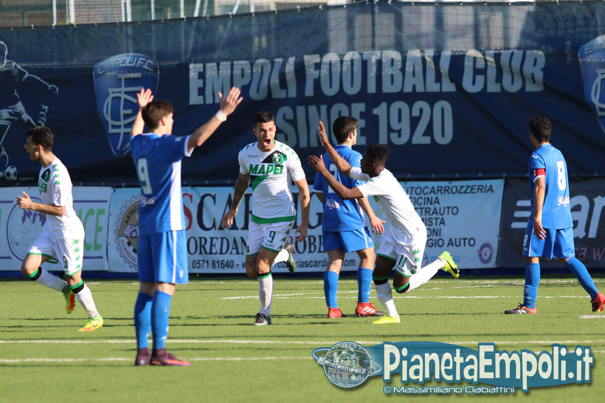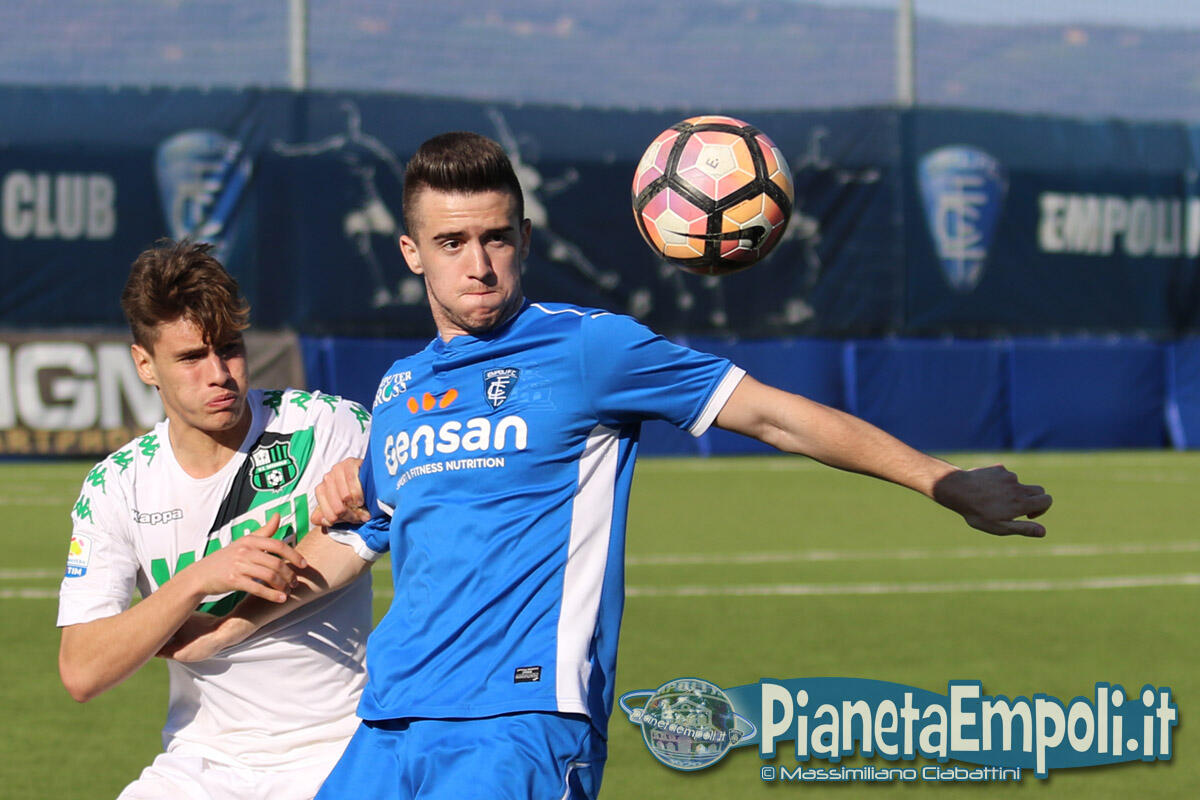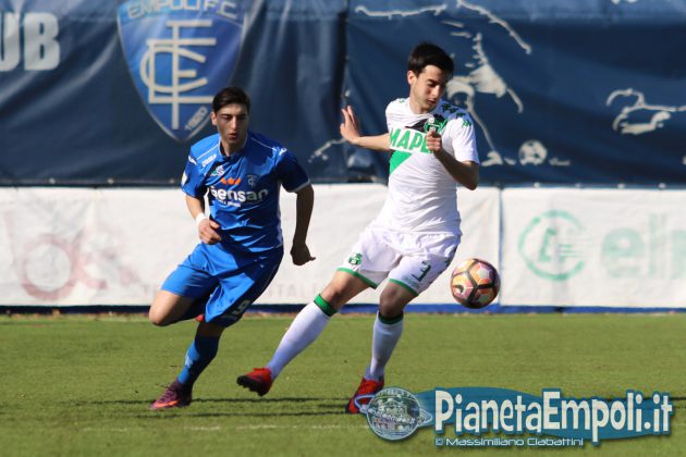 Brutta sconfitta per gli azzurri di Dal Canto quella incassata oggi sul principale di Monteboro, sia per come è maturata che per le ripercussioni sulla classifica. In vantaggio di 2-0 a poco più di 20′ dal termine, e dopo aver sfiorato il 3-0 con Traore, l’Empoli si da raggiungere e superare dagli emiliani in 10’, regalando tre punti al Sassuolo che si è dimostrato squadra più fisica e oggi agonisticamente superiore ai padroni di casa. I neroverdi fin dai primi minuti hanno proposto un pressing alto ed asfissiante su tutti i portatori di palla, sporcando le linee di gioco empolesi e opponendo con successo la propria fisicità al supeperiore fraseggio dei ragazzi di Dal Canto, spesso costretti a ripiegare sui lanci lunghi. Il pareggio sarebbe stato probabilmente il risultato più giusto in una gara dove non si è visto buon calcio ma nella quale hanno prevalso l’intensità e il tasso agonistico (entrambi a pannaggio del Sassuolo). La prossima sfida col Torino, alla ripresa del campionato, diventa fondamentale per la corsa ai play off. Da lunedì prende invece il via la Viareggio Cup, dove l’Empoli debutterà contro lo Zenit San Pietroburgo.