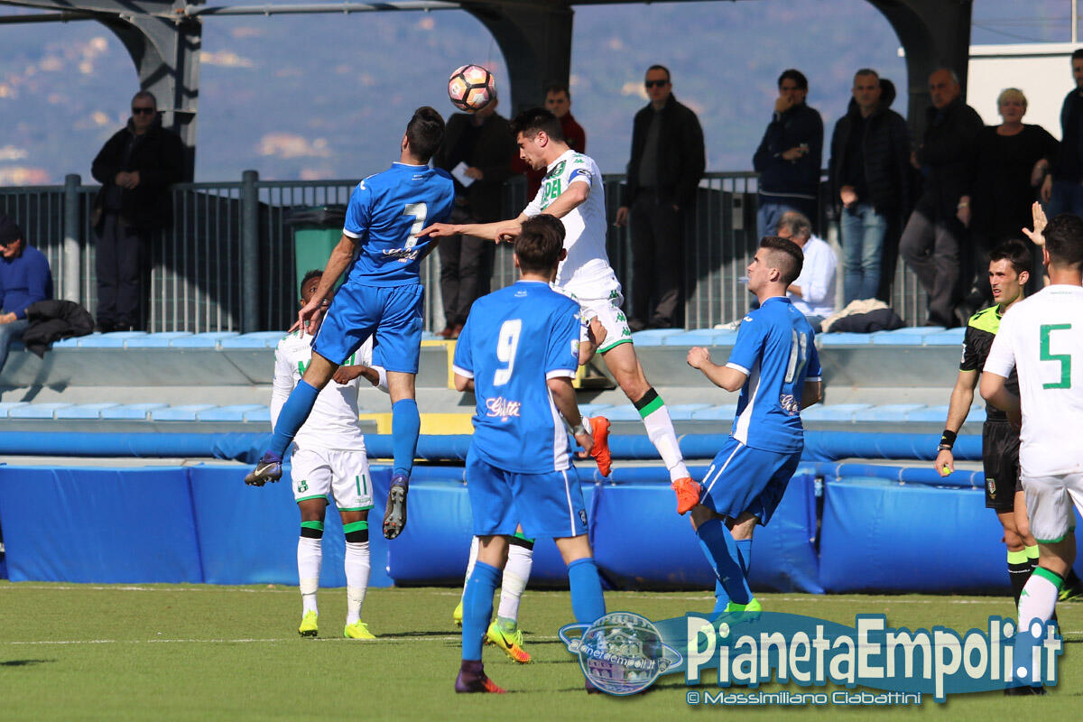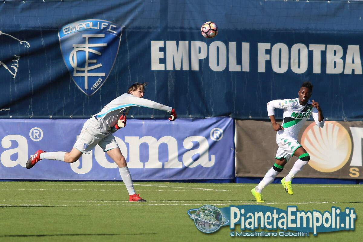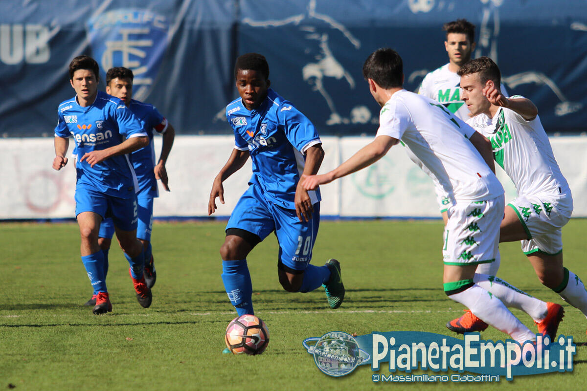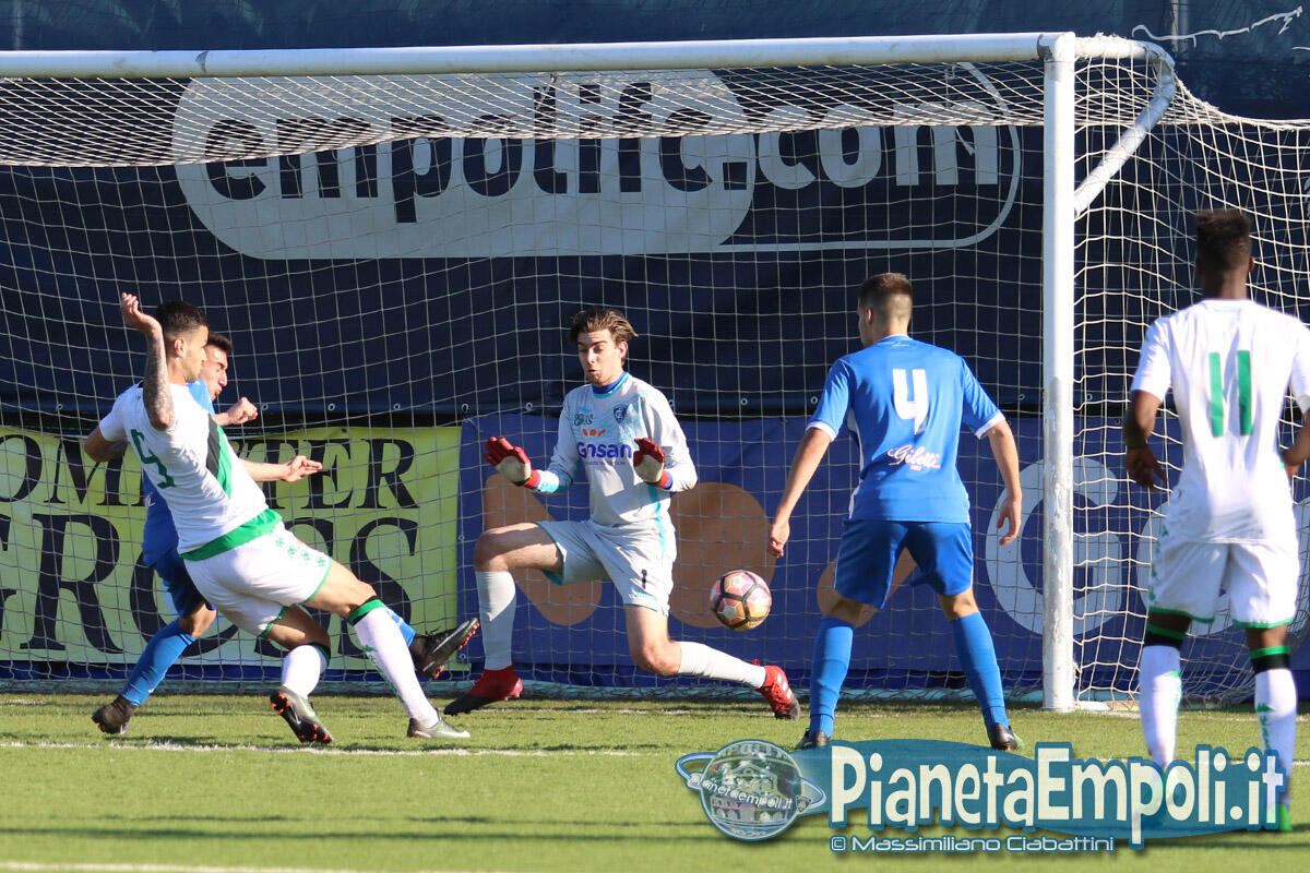 Brutta sconfitta per gli azzurri di Dal Canto quella incassata oggi sul principale di Monteboro, sia per come è maturata che per le ripercussioni sulla classifica. In vantaggio di 2-0 a poco più di 20′ dal termine, e dopo aver sfiorato il 3-0 con Traore, l’Empoli si da raggiungere e superare dagli emiliani in 10’, regalando tre punti al Sassuolo che si è dimostrato squadra più fisica e oggi agonisticamente superiore ai padroni di casa. I neroverdi fin dai primi minuti hanno proposto un pressing alto ed asfissiante su tutti i portatori di palla, sporcando le linee di gioco empolesi e opponendo con successo la propria fisicità al supeperiore fraseggio dei ragazzi di Dal Canto, spesso costretti a ripiegare sui lanci lunghi. Il pareggio sarebbe stato probabilmente il risultato più giusto in una gara dove non si è visto buon calcio ma nella quale hanno prevalso l’intensità e il tasso agonistico (entrambi a pannaggio del Sassuolo). La prossima sfida col Torino, alla ripresa del campionato, diventa fondamentale per la corsa ai play off. Da lunedì prende invece il via la Viareggio Cup, dove l’Empoli debutterà contro lo Zenit San Pietroburgo.