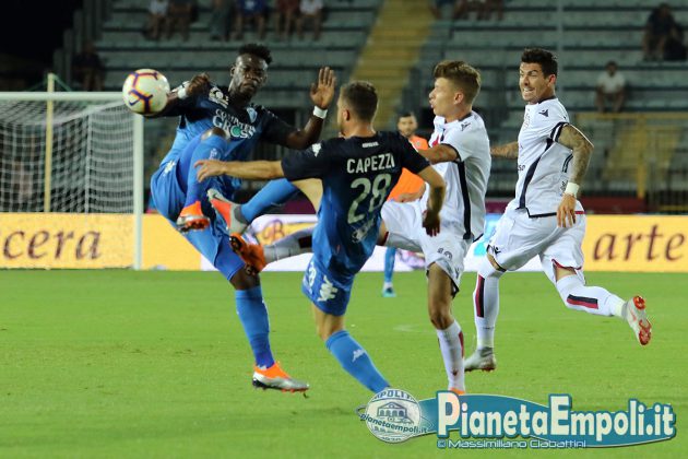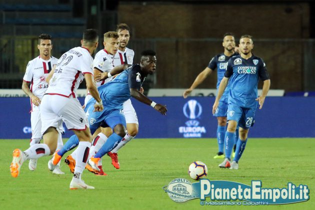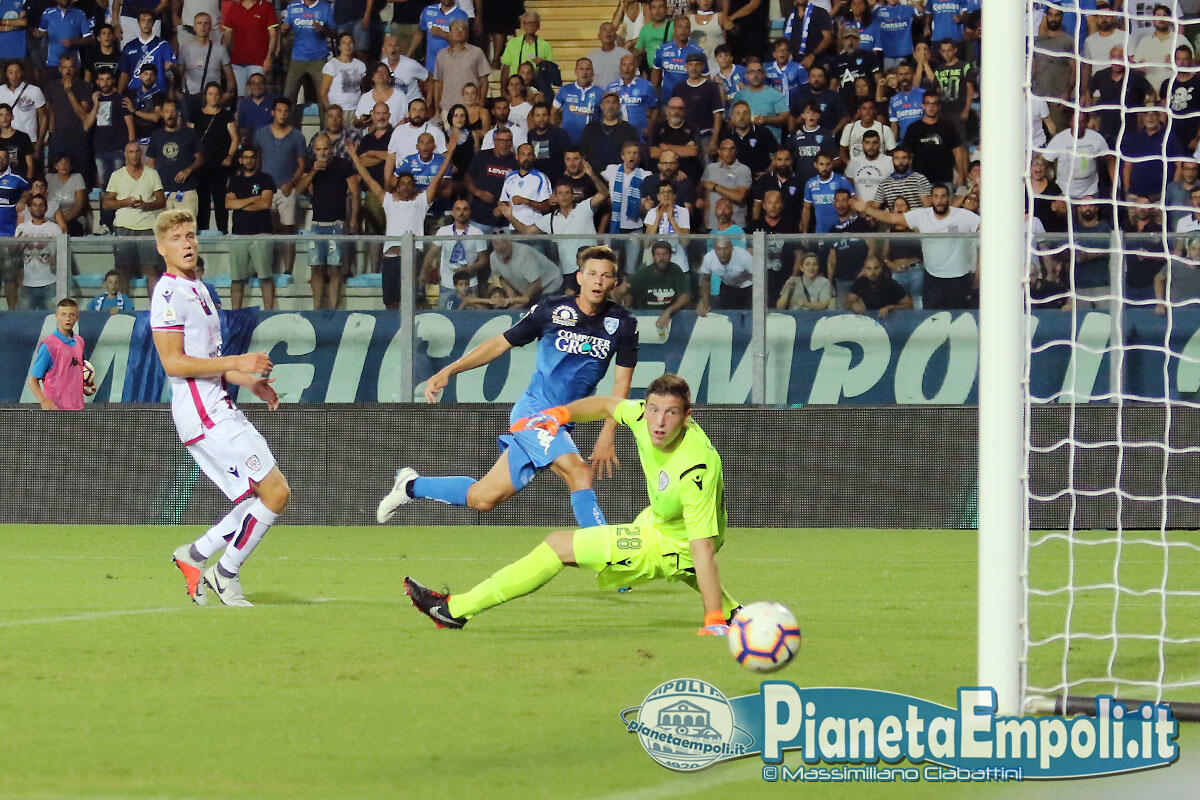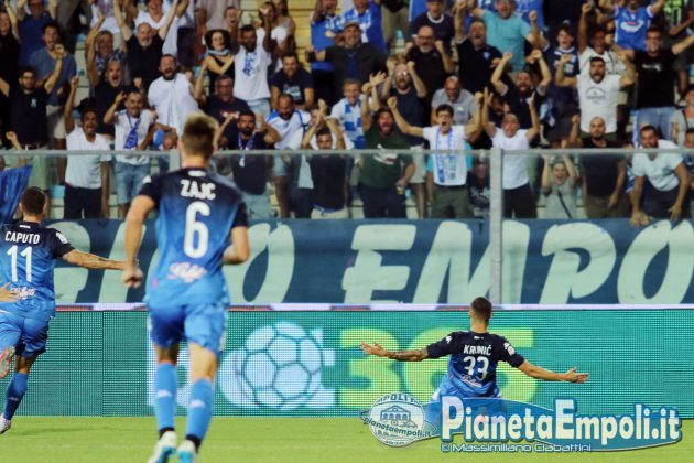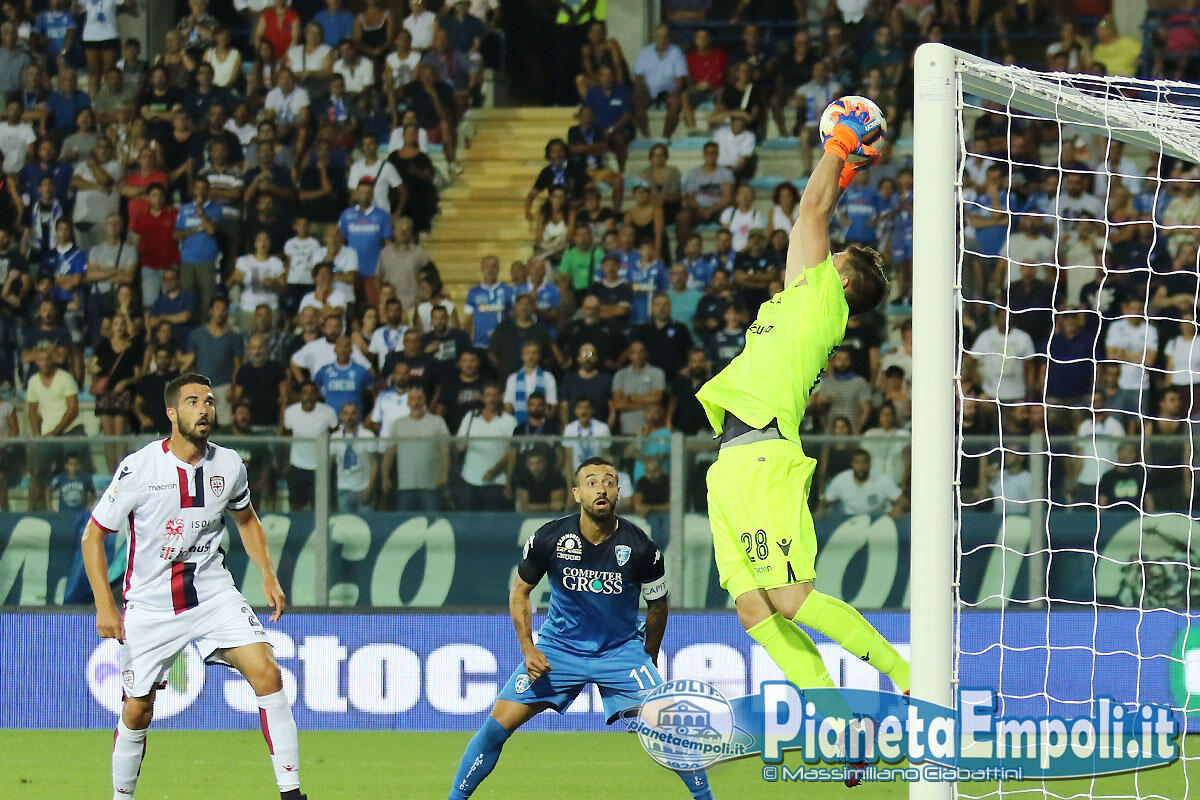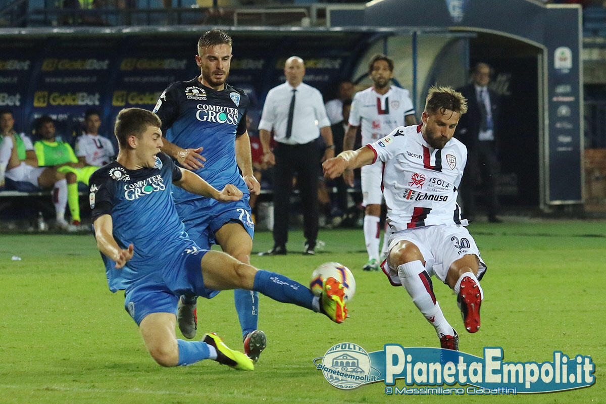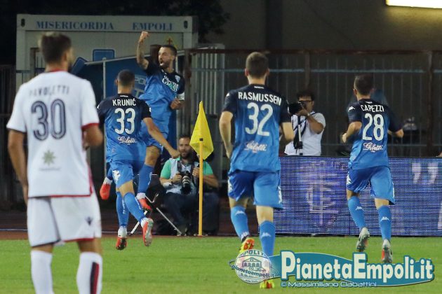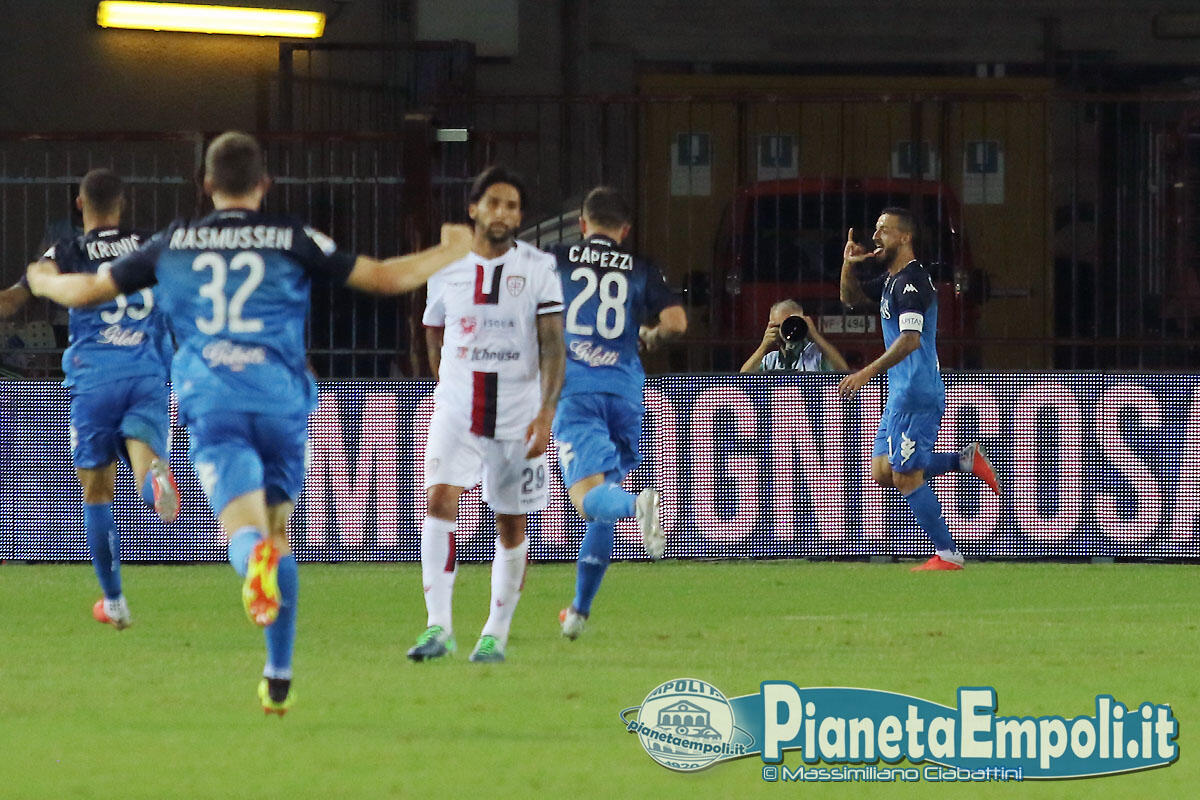 L’Empoli celebra nel migliore dei modi il ritorno in Serie A prendendosi tre punti davvero preziosi per la lotta salvezza. Superato 2-0 il Cagliari al Castellani: una vittoria meritata, figlia di una prestazione “da Empoli” con cui la squadra di Andreazzoli dà subitro una netta risposta alla sconfitta della scorsa settimana. Le danze si aprono al 6’ con un colpo di testa di Silvestre bloccato da Cragno, e già al 14’ l’Empoli passa con Krunic che riceve da Zajc e da pochi metri segna il vantaggio azzurro. Un minuto dopo potrebbe arrivare il raddoppio ma il centrocampista sloveno sbaglia clamorosamente un goal praticamente fatto. Alla mezz’ora Pavoletti sfodera un colpo di testa che sfiora la traversa lasciando invariato il parziale al momento in cui le squadre vanno al riposo. Anche la ripresa si apre con un pericoloso colpo di testa di Silvestre, cui segue il goal di Caputo su assist ancora di Zajc. Al 62’ Pavoletti coglie il palo con una botta dal limite dell’area, nel tentativo di rimettere la gara del Cagliari in carreggiata, ma l’attaccante rossoblu oggi non appare baciato dalla dea bendata. Nella fase centrale della seconda frazione l’Empoli è bravo a contenere gli avversari, limitandosi a ripartire in contropiede, ma nel finale c’è gloria anche per Terracciano che compie un vero miracolo volando su una punizione di Barella.