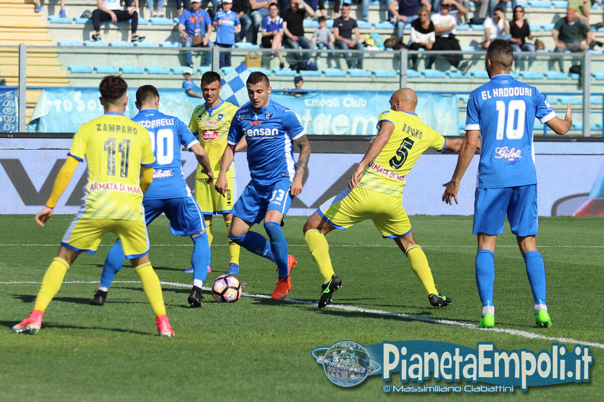 Un pareggio che sa di sconfitta, una prestazione sotto le aspettative contro un avversario modesto: questo Empoli appare prigioniero della paura. Al 5’ gli azzurri rischiano il goal ospite con Campagnaro che fallisce incredibilmente sotto porta, ma restano in partita e al 7’ sfiorano il vantaggio con Pasqual che su punizione dal limite colpisce il palo a portiere battuto. Il gol arriva per la squadra di Martusciello pochi minuti, grazie ad una bella azione che parte da Laurini, prolunga di testa di Thiam, sponda di Marilungo e rasoterra vincente di El Kaddouri per l’1-0 empolese. Il Pescara si divora un’altra rete con Caprari, che praticamente a porta vuota mette fuori, dopo aver approfitatto di una pesante inegenuità di Veseli. La gara prosegue costellata di errori su entrambi i fronti ma senza particolari sussulti fino a che Bahabeck, partito sul filo del fuorigioco, non innesca Caprari che stavolta non sbaglia davanti a Skorupski. Chiusa la prima frazione in parità, l’Empoli cerca il riscatto in avvio di ripresa, puntando ostinatamente la porta difesa da Fiorillo: al 10’ trova una punizione dal limite con Pasqual che viene deviata dalla barriera, al 20’ sfiora di nuovo il vantaggio con Krunic che si fa parare dal portiere pescarese una conclusione ravvicinata a botta sicura. Tanta buona volontà da parte degli azzurri ma pochi risultati e molta confusione: la gara finisce così in parità tra i fischi dei tifosi del Castellani.