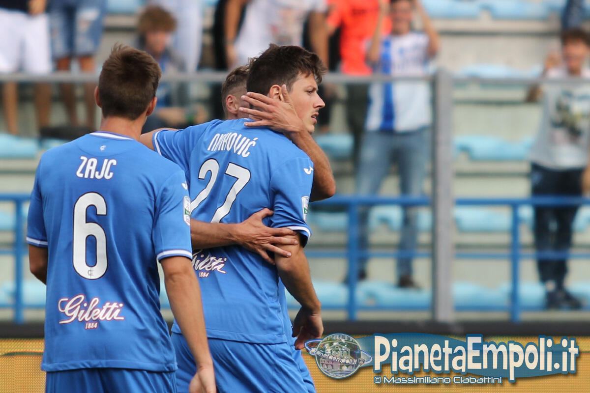 Una gara da vincere per dimostrare di aver ambizioni importanti, e vittoria è stata. Un successo netto, mai messo in dubbio nel corso del match e con di fatto un solo pericolo reale portato dall’Ascoli nei 90′. Gara preparata bene e giocata perfettamente: cresce l’amalgama e per la prima volta la squadra non subisce reti. Parte fortissimo l’Empoli, andando vicino al vantaggio con una grande botta di Simic da fuori al 15′. L’Empoli spinge bene mettendo alle corde l’avversario ed al 30′ Caputo si divora clamorosamente un goal sparando sul difensore con la porta praticamente spalancata. Il gol arriva al 36’ con Donnarumma che aggancia benissimo il suggerimento di Pasqual e trafigge il portiere bianconero sul primo palo. L’Ascoli ha la palla buona per pareggiare ad inizio ripresa ma Bianchi spara alto, mentre non sbaglia invece Caputo al 4’ su comodo assist di Untersee. L’Ascoli si riversa in avanti cercando di fare la partita rincorrendo almeno il pareggio, l’Empoli dal canto suo può limitarsi a controllare le sfuriate ospiti in attesa di sfruttare il contropiede giusto. Nei minuti finali vari capovolgimenti di fronte, ma sono di nuovo gli azzurri ad andare in goal con il neoentrato Ninkovic che fa tutto da solo, mettendo a sedere Gigliotti e freddando il portiere. Un successo importante, che alimenta morale ed autostima della squadra di Vivarini: due vittorie su due gare intere, ancora imbattuti. Il messaggio alle pretendenti nella corsa alla promozione è lanciato forte e chiaro.