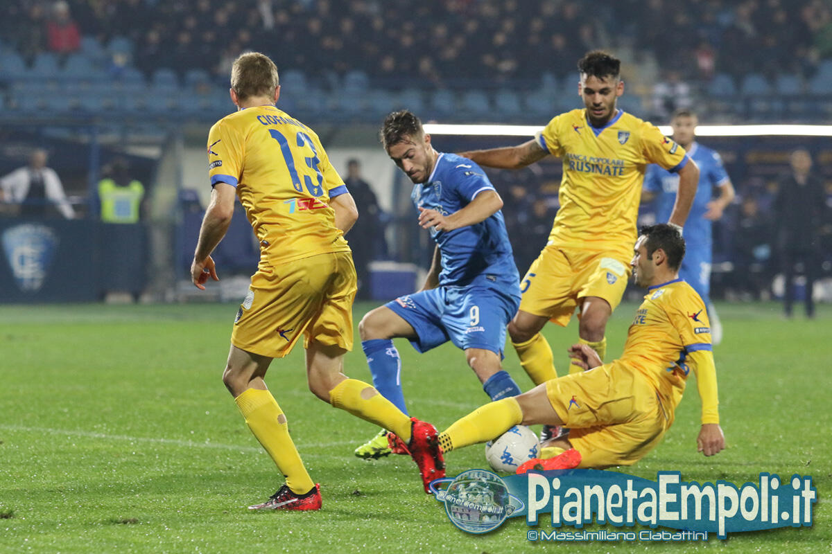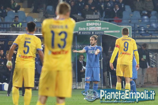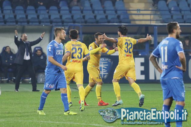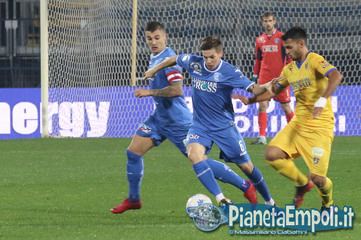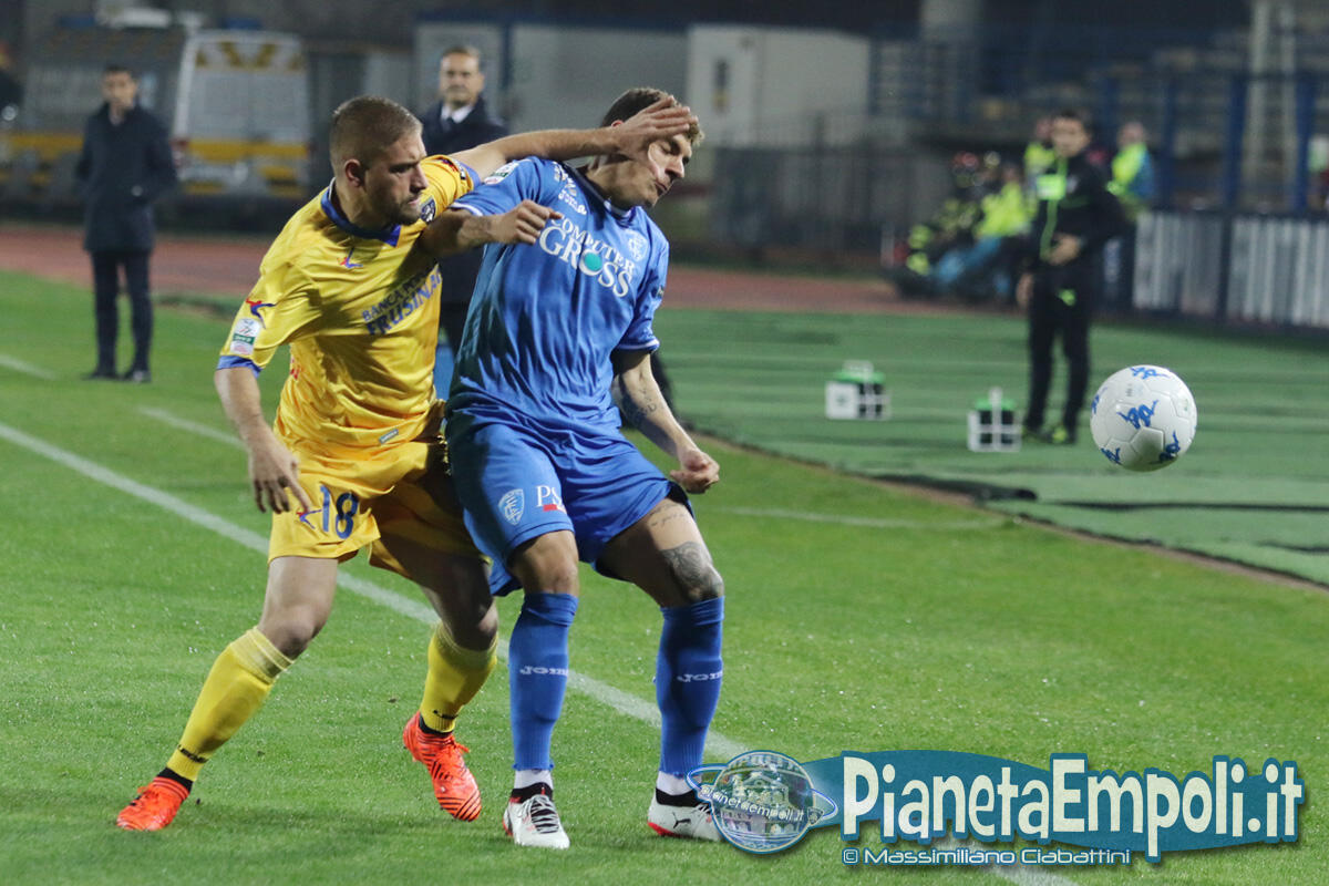 Pirotecnico 3-3 nel big match del Castellani con l’incubo che nel finale si trasforma per gli azzurri in sogno. Una partita divertente fin dalle prime battute, con il Frosinone a cercare le palle alte in mezzo alla nostra area e l’Empoli a ripartire palla a terra cercando le giocate in verticale. Una buona occasione per Donnarumma al 13’ con un tiro dal limite, un po’ fiacco come prima vera azione da goal, goal che però trova il Frosinone al 15’ con un bolide da fuori area di Ciano. L’Empoli attacca nella fase centrale del primo tempo, creando diversi pericoli, ma paradossalmente deve ringraziare la sua buona stella se non viene punito sulla doppia occasione di Ciofani e Ciano al 31’. Ma il raddoppio frusinate è nell’aria e arriva pochi minuti, con il solito Ciano bravo a tenere palla a centro area e girarsi battendo imparabilmente Provedel. Gli azzurri mostrano carattere, non si danno per vinti e si rovesciano in avanti nel tentativo di rimettere in piedi la propria gara ma si va al riposo sul 2-0 per i ciociari. Il secondo tempo si apre nel modo peggiore per l’Empoli, con il terzo gol del Frosinone che arriva grazie ad un gran tiro di Dionisi da fuori. La squadra di Vivarini prova a riaprire la gara con la rete di Di Lorenzo, ma nei fatti gli ospiti possono concendersi il lusso di limitarsi a controllare le sfuriate empolesi senza correre troppi rischi. Tutto deve ancora però succedere, perché nei minuti di recupero avviene l’incredibile: Caputo prima accorcia e poi pareggia il conto delle reti, regalando un insperato punto alla propria squadra.