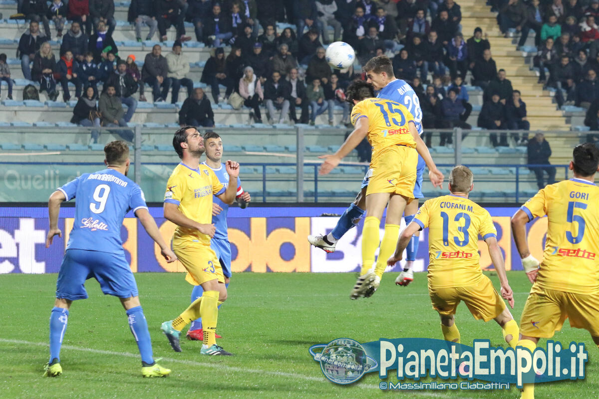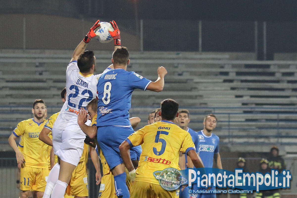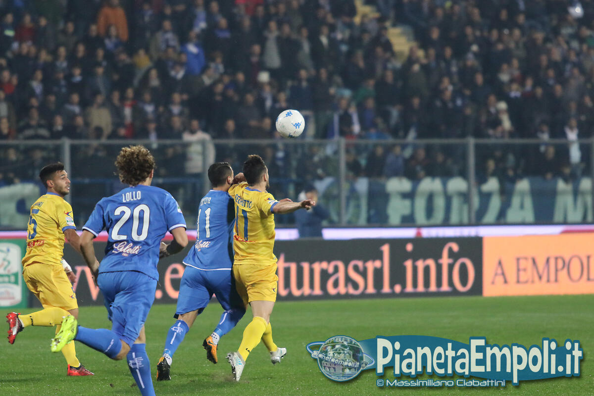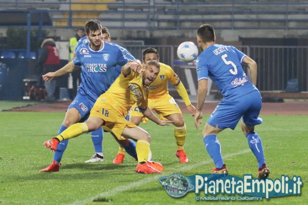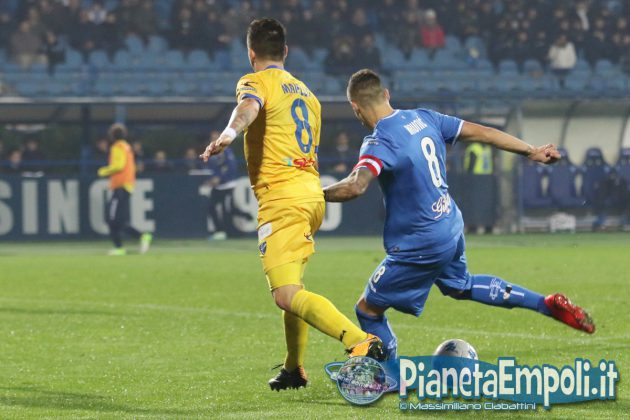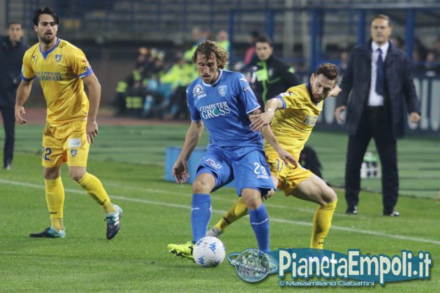 Pirotecnico 3-3 nel big match del Castellani con l’incubo che nel finale si trasforma per gli azzurri in sogno. Una partita divertente fin dalle prime battute, con il Frosinone a cercare le palle alte in mezzo alla nostra area e l’Empoli a ripartire palla a terra cercando le giocate in verticale. Una buona occasione per Donnarumma al 13’ con un tiro dal limite, un po’ fiacco come prima vera azione da goal, goal che però trova il Frosinone al 15’ con un bolide da fuori area di Ciano. L’Empoli attacca nella fase centrale del primo tempo, creando diversi pericoli, ma paradossalmente deve ringraziare la sua buona stella se non viene punito sulla doppia occasione di Ciofani e Ciano al 31’. Ma il raddoppio frusinate è nell’aria e arriva pochi minuti, con il solito Ciano bravo a tenere palla a centro area e girarsi battendo imparabilmente Provedel. Gli azzurri mostrano carattere, non si danno per vinti e si rovesciano in avanti nel tentativo di rimettere in piedi la propria gara ma si va al riposo sul 2-0 per i ciociari. Il secondo tempo si apre nel modo peggiore per l’Empoli, con il terzo gol del Frosinone che arriva grazie ad un gran tiro di Dionisi da fuori. La squadra di Vivarini prova a riaprire la gara con la rete di Di Lorenzo, ma nei fatti gli ospiti possono concendersi il lusso di limitarsi a controllare le sfuriate empolesi senza correre troppi rischi. Tutto deve ancora però succedere, perché nei minuti di recupero avviene l’incredibile: Caputo prima accorcia e poi pareggia il conto delle reti, regalando un insperato punto alla propria squadra.