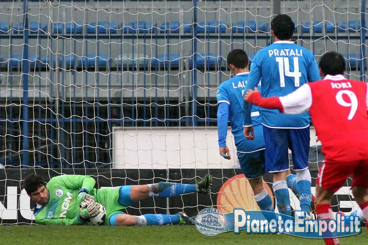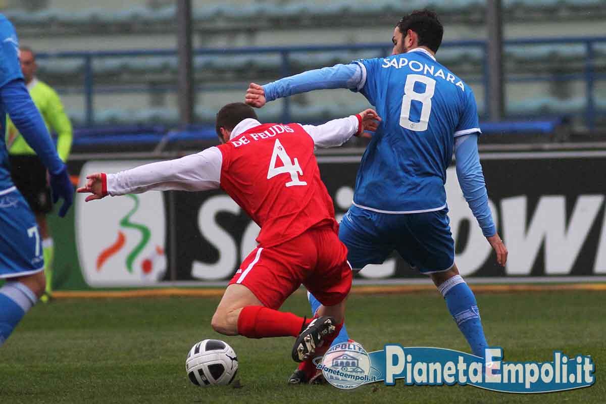 La squadra appare più brillante rispetto alla gara di Terni e riesce a farsi valere su di un avversario venuto a Empoli a giocarsi il tutto per tutto. Al 26′ azzurri in vantaggio grazie ad una punizione di Maccarone che spedisce alle spalle di Silvestri un preciso rasoterra. Il Padova accusa il colpo, i ragazzi di mister Sarri cercano di chiudere la gara ma invece sono i biancoscudati a riaprirla. Il palo di Farias al 42′ è l’avvisaglia del pareggio imminente, firmato dallo stesso giocatore che solo un minuto più tardi trafigge indisturbato Pelagotti.