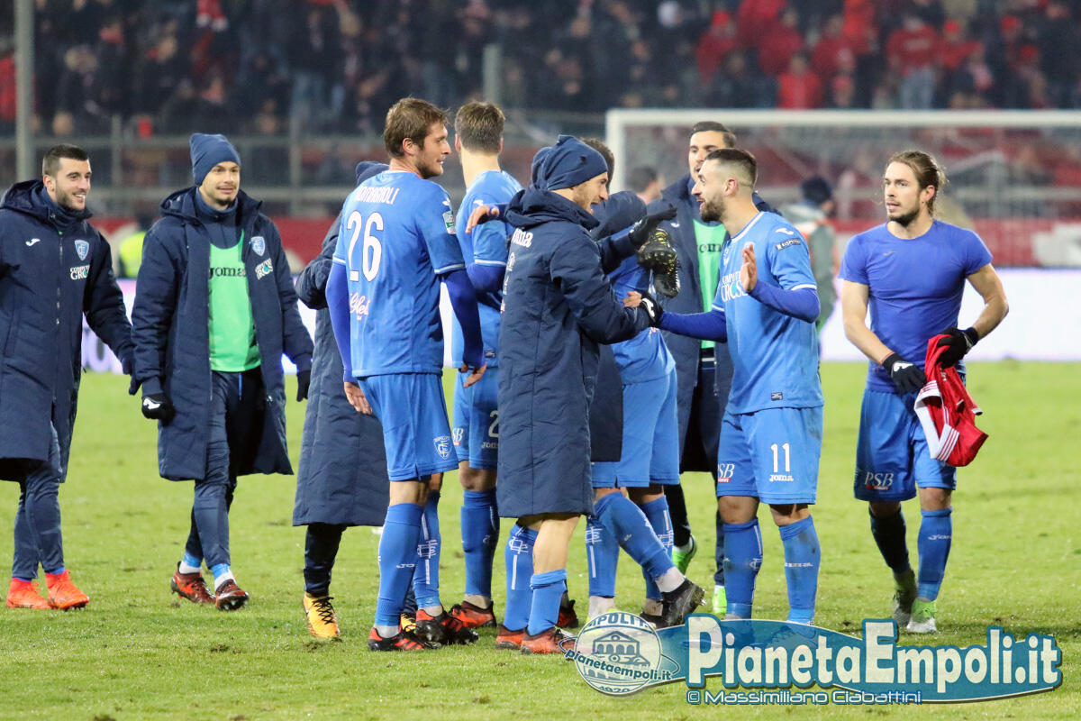 Gli azzurri chiudono un 2017 tutt’altro che da ricordare con una vittoria, e lo fanno in trasferta dove la vittoria mancava da più di due mesi. Una vittoria figlia della maggiore qualità dell’Empoli, opposta ad un avversario non irresistibile e che ha palesato qualche limite soprattutto nei singoli interpreti. In virtù dei risulti arrivati sugli altri campi la squadra di Andreazzoli chiude al terzo posto questo girone di andata. La gara sembra faticare a decollare nei primi minuti ma già al 9′ gli azzurri passano con Donnarumma che scambia stretto al limite dell’area, si crea lo spazio non trovando opposizione e batte Nocchi. La reazione del Perugia non c’è e gli azzurri tengono in mano il pallino del gioco fino al minuto 18′, quando Provedel rischia l’intervento da rigore su Cerri. Il gol perugino arriva però un minuto più tardi con Di Carmine, che insacca dopo un contropiede partito dalla propria trequarti. Al 21’ l’Empoli ritrova il vantaggio con Caputo, che la mette dentro da pochi passi su appoggio rasoterra di Pasqual da sinistra, e cala il tris al 36’ con Donnarumma che finalizza un contropiede innescato da Krunic, chiudendo così la prima frazione sull’1-3. Parte con più incisività la squadra di casa nel secondo tempo ma subisce il quarto gol azzurro con Caputo e la netta deviazione di Volta. Di Carmine riduce lo svantaggio dei suoi appena 2′ dopo e il Perugia alza il ritmo della gara, tentando un arrembaggio tanto confuso quanto infruttuoso alla porta di Provedel. La gara finisce 2-4 ed i tre punti in palio prendono la strada di Empoli.