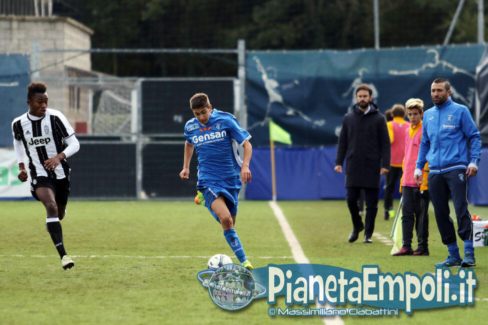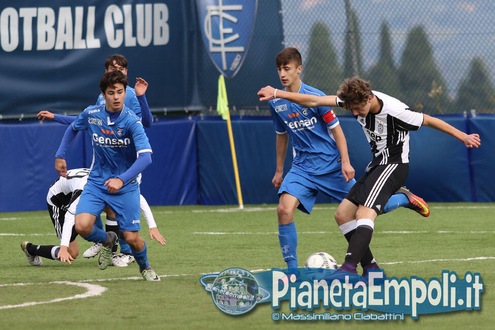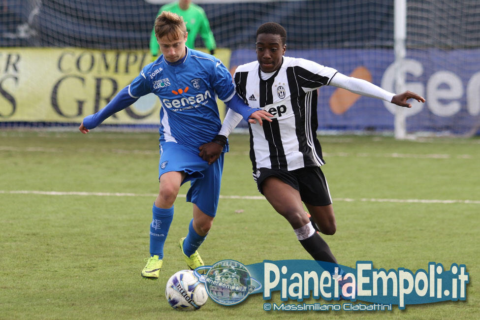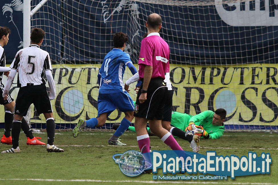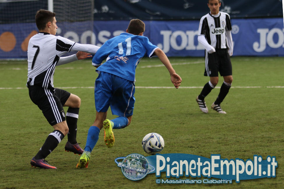 Finisce in parità una gara equilibrata, giocata a viso aperto da entrambe le squadre. Un tempo per parte, meglio l’Empoli nella prima frazione, più bravi gli juventini nella ripresa, in accordo con le marcature che vedono passare in vantaggio gli azzurri con Lipari al 10′ e i bianconeri pareggiare in apertura di seconda frazione. Ottimo il tasso tecnico visto sul terreno del campo principale di Monteboro, un pò più di ciniscmo in area di rigore avrebbe forse dato vita ad un tabellino più rotondo su entrambi i fronti. Da segnalare la prestazione atletica degli azzurri, protagonisti di un forsennato pressing sugli avversari finchè fiato e gambe hanno sorretto i ragazzi di mister Buscè. Di seguito i dati salienti del match e la gallery con le immagini più significative del confronto.