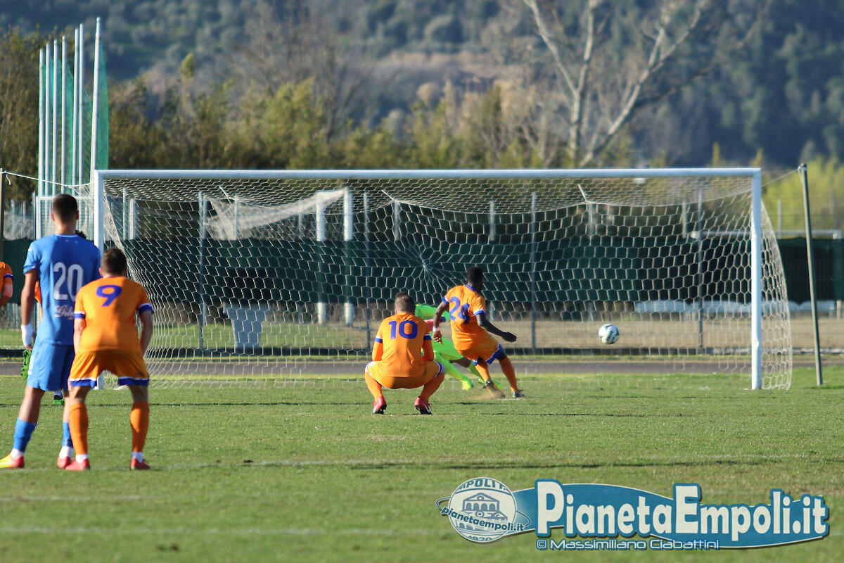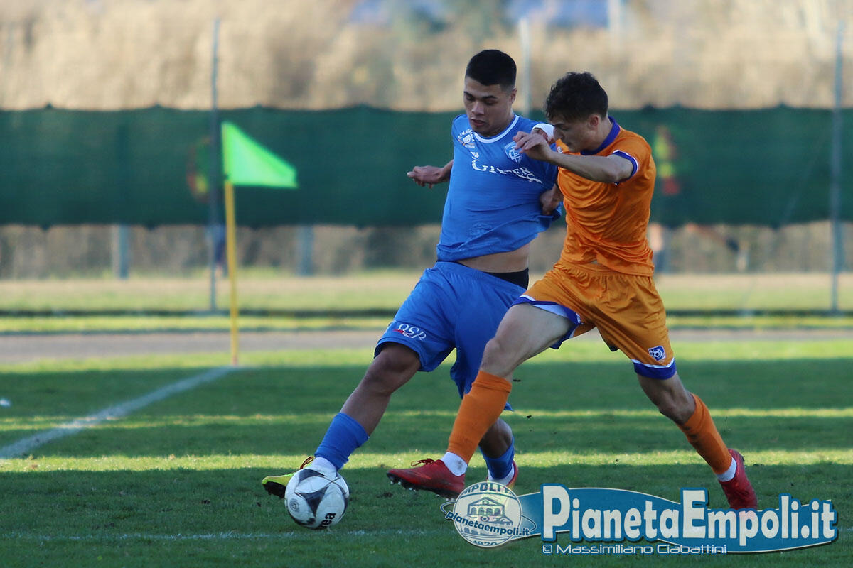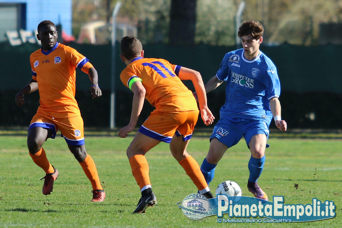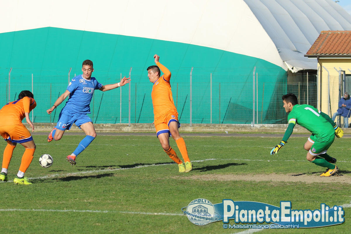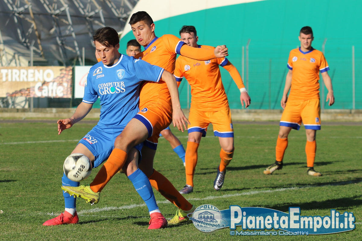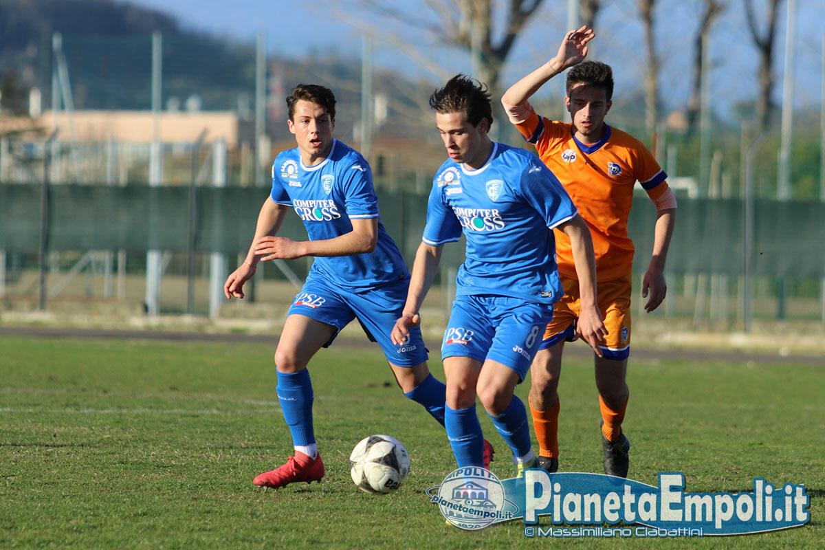 Tutto rimandato a sabato prossimo, ultima giornata del Girone. Pareggio con gol tra due squadre che, pur non offrendo un grande spettacolo, hanno cercato comunque di proporre gioco e tentato di superarsi senza tatticismi e cercando di mettere dentro quel tanto di intensità per dare concretezza e spessore quanto proposto. Va detto che forse ai punti avrebbe vinto la Rappresentativa di Serie D perché alcuni interventi di Meli si sono rivelati decisivi ma va anche detto che gli azzurri non avrebbero meritato di uscire dalla gara con zero punti perché hanno fatto vedere alcune cose interessanti e hanno cercato di proporsi di più, anche senza grandi risultati. L’Empoli non sta attraversando certo il suo migliior periodo di forma, lo si vede nei molti passaggi sbagliati, nelle troppoe imprecisione nel possesso palla e nelle ripartenze troppo spesso imprecise. La difesa a volte fa fatica e non sempre ci può essere super-Meli a  metterci una toppa. il centrocampo non produce qualità e le punte sono lasciate spesso sole anche se non sembrano neppure loro nel periodo migliore. Al rigore venuto per una ingenuità di Matteucci ha risposto Imbrenda con un gol tirato fuori dal cilindro magico quando ormai la gara era agli sgoccioli. Tutti sommato giusto così.