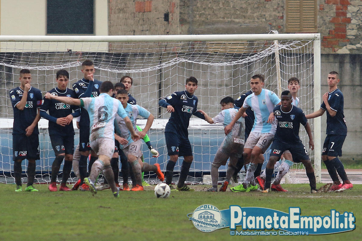 Nella pioggia e nel fango, in un campo impossibile, la forza e la determinazione degli azzurri hanno la meglio sulla Virtus Entella alla partita d’esordio della 70a VIAREGGIO CUP. Difficile parlare di gioco, di moduli, di tattica: i giocatori hanno giocato sopratutto cercando di spingere il pallone in avanti e di cercare, per quanto possibile, il minimo sindacale di qualcosa che assomigliasse ad una trama di gioco. L’Empoli comunque, nel complesso dei 90′ e passa di gioco, si è lasciato preferire, più per quello che ha lasciato intravedere che per quello che si è visto, e perché ha cercato comunque di produrre qualcosa che potesse assomigliare al calcio. Bravi, comunque, tutti i giocatori scesi oggi in campo al Raciti di Quarrata.