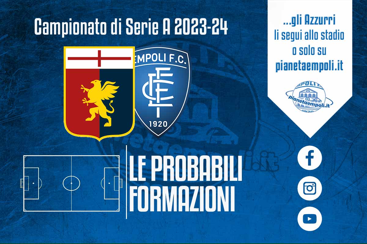 Sarà un 3-5-2 il modulo che adotterà Gilardino, elemento non certo positivo nella sua breve permanenza ad Empoli da giocatore. Assenza pesantissima quella di Gudmundsson, mentre Retegui potrebbe addirittura partire titolare. Non dovrebbero esserci particolari ballottaggi, con Messias ad essere l’altro attaccante. In campo fin da subito due ex come De Winter e Sabelli. Per il Grifone sono poi indisponibili Strootman e Bani.